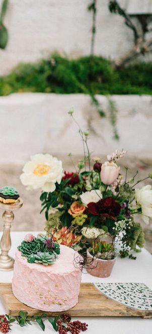 Succulent Wedding Cake and Plant Decor for a Timeless Wedding in Puglia, Italy
