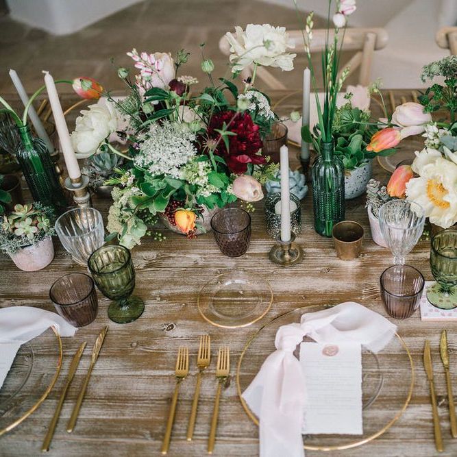 Tableclothes, tableware and forniture: