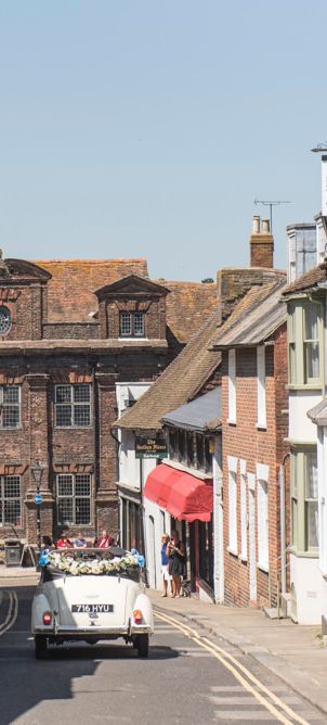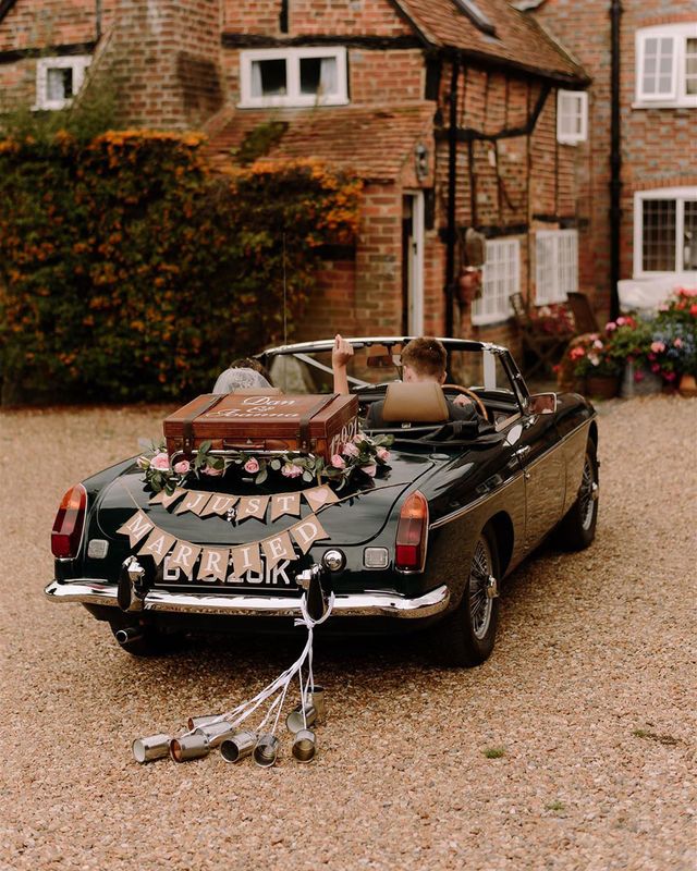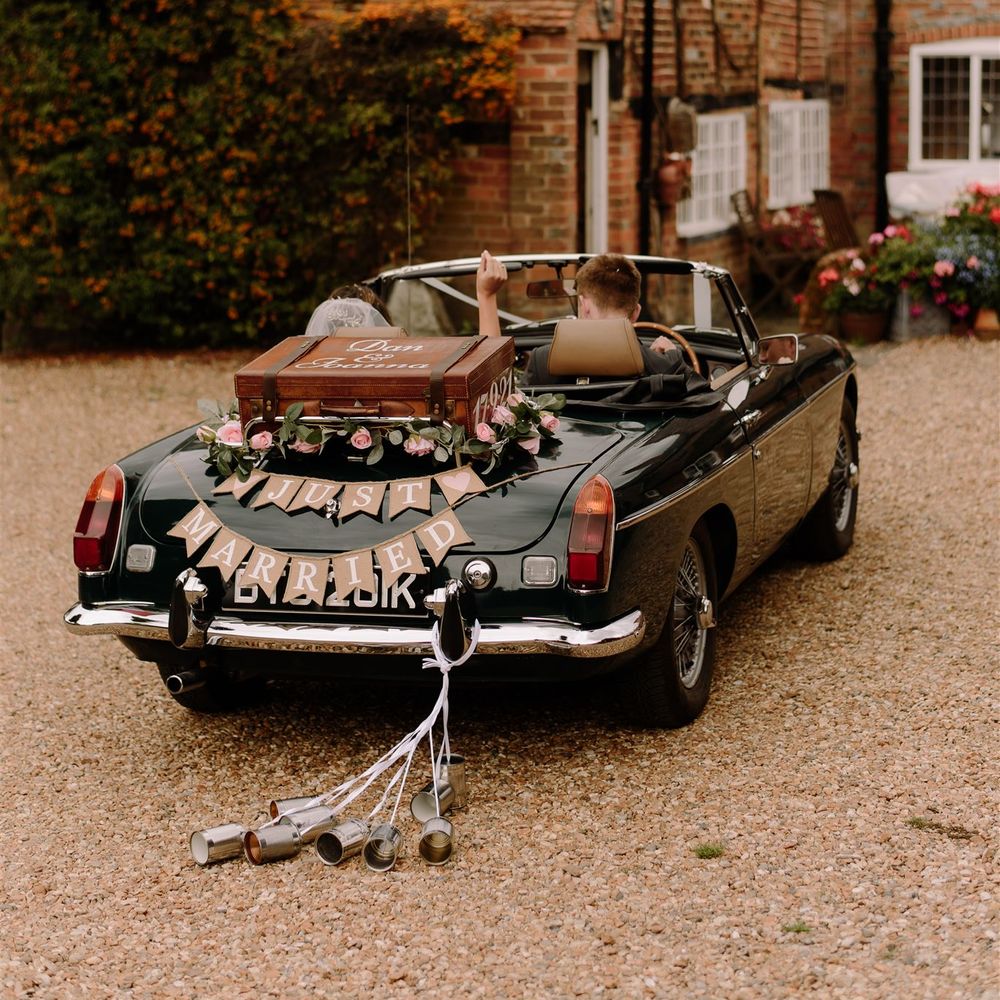 Morris Minor Wedding Car, Hanging Flowers in Bottles and Town Crier for Village Hall Wedding in Rye