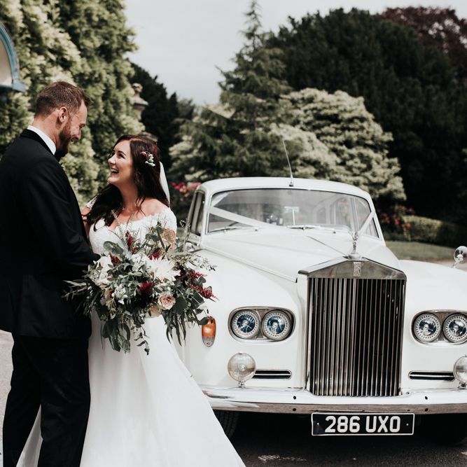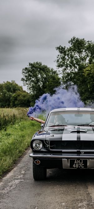 Ford Mustang Wedding Car and Smoke Bomb Portraits for a Rustic Wedding at East Yorkshire Barns