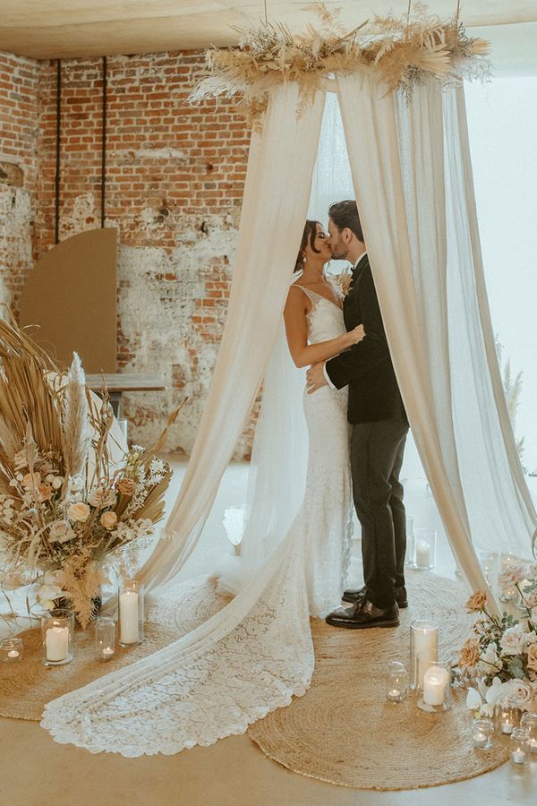 This minimal and super chic all white wedding shoot was created by Harmonie Photography. A firm believer in 'less is more', clean lines and negative space alongside bridal glam result in an elaborate minimalist vibe. This all white set up is both industrial and refined with editorial vibes. We're desperate to try on those couture bridal outfits too!