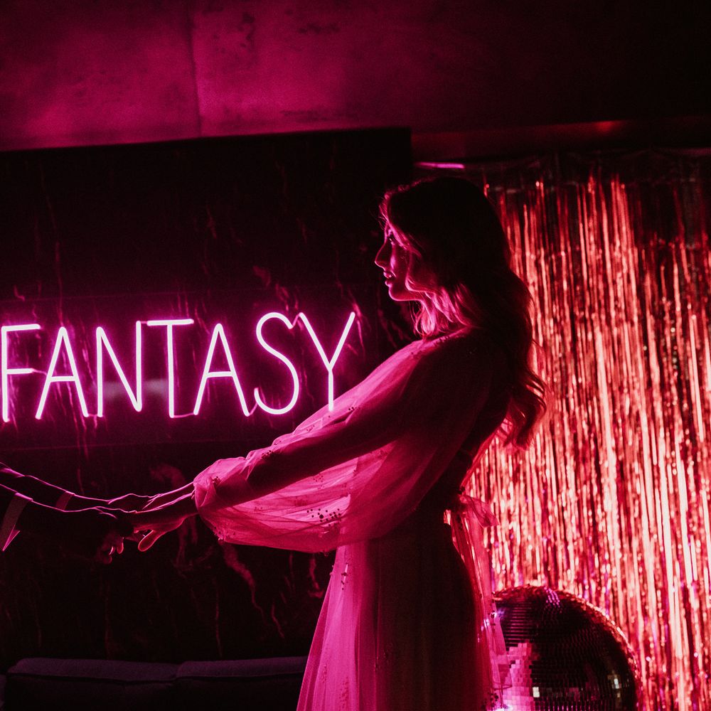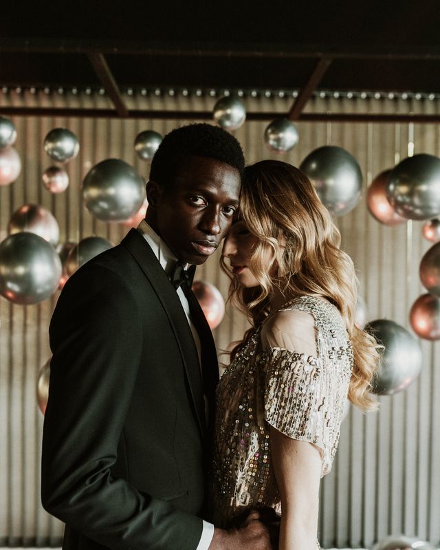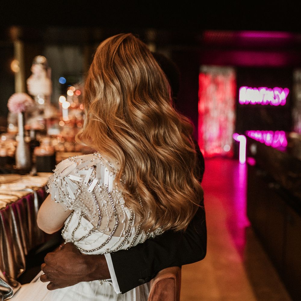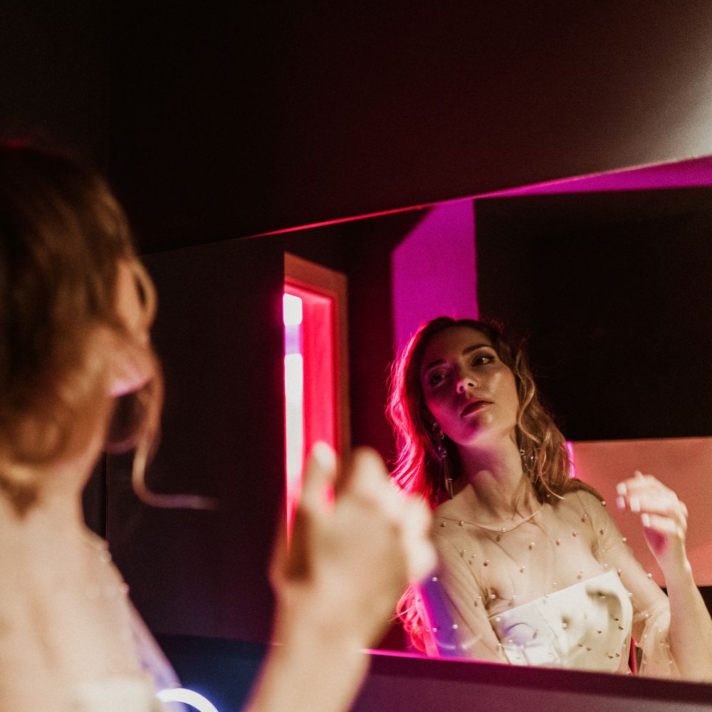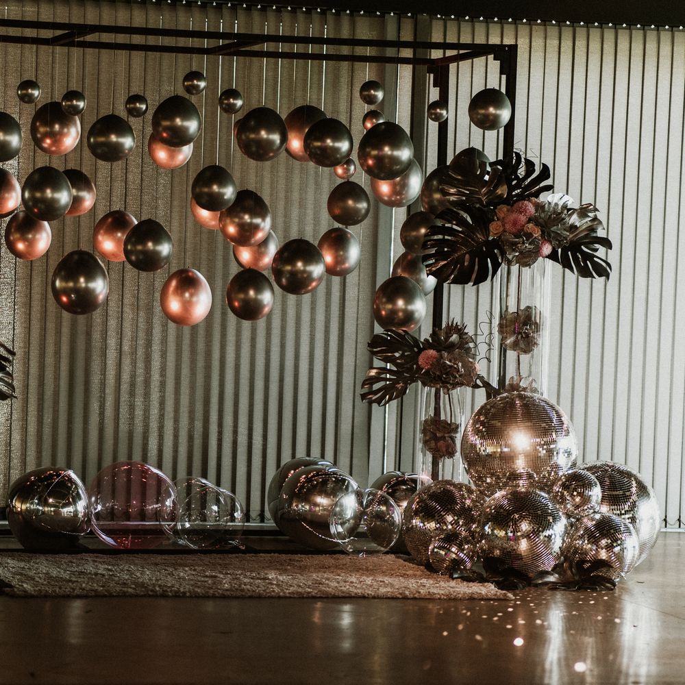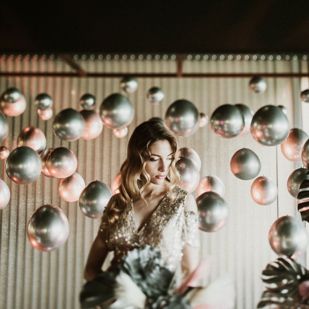 Fantasy wedding shoot inspired by the lights of disco balls, the glitter, the colour pink and the frenetic rhythm of the parties. It is a session with strength, character, full of optical illusions and sensations, transmits joy, elegance and is a tribute to many times and transcendental and relevant aesthetics such as art deco, the time of agitation social and the excesses along with the crazy 70's in which Saturday Night Fever made us dance non-stop. Something new, extraordinary, beautiful, simple, but with the ability to envelop you in a real fantasy.