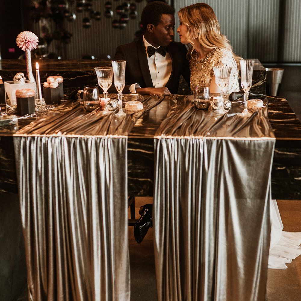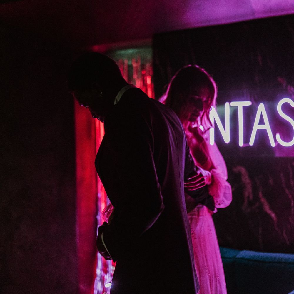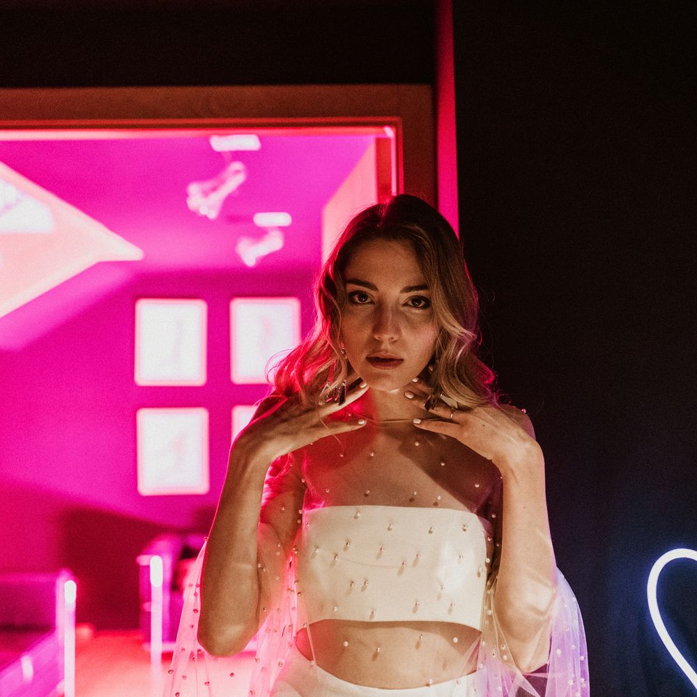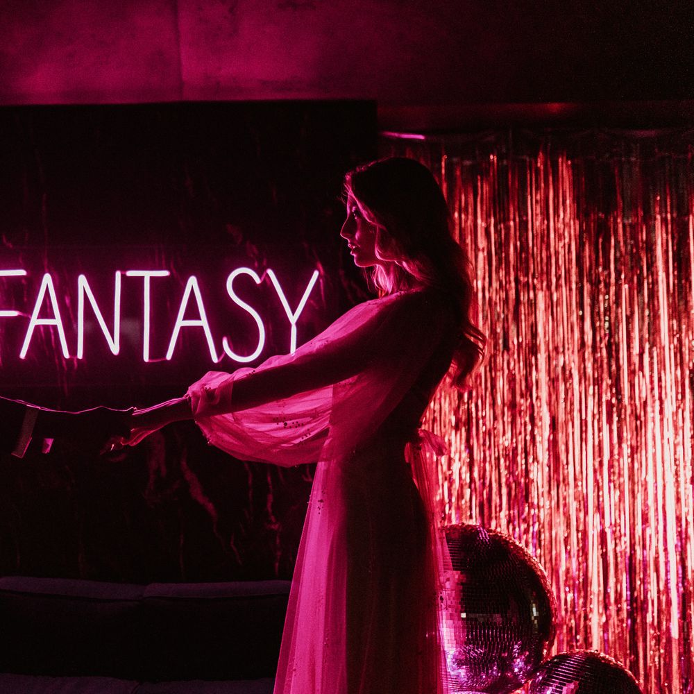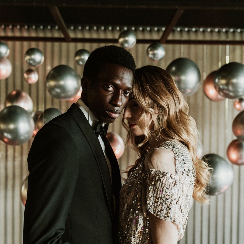 Fantasy wedding shoot inspired by the lights of disco balls, the glitter, the colour pink and the frenetic rhythm of the parties. It is a session with strength, character, full of optical illusions and sensations, transmits joy, elegance and is a tribute to many times and transcendental and relevant aesthetics such as art deco, the time of agitation social and the excesses along with the crazy 70's in which Saturday Night Fever made us dance non-stop. Something new, extraordinary, beautiful, simple, but with the ability to envelop you in a real fantasy.