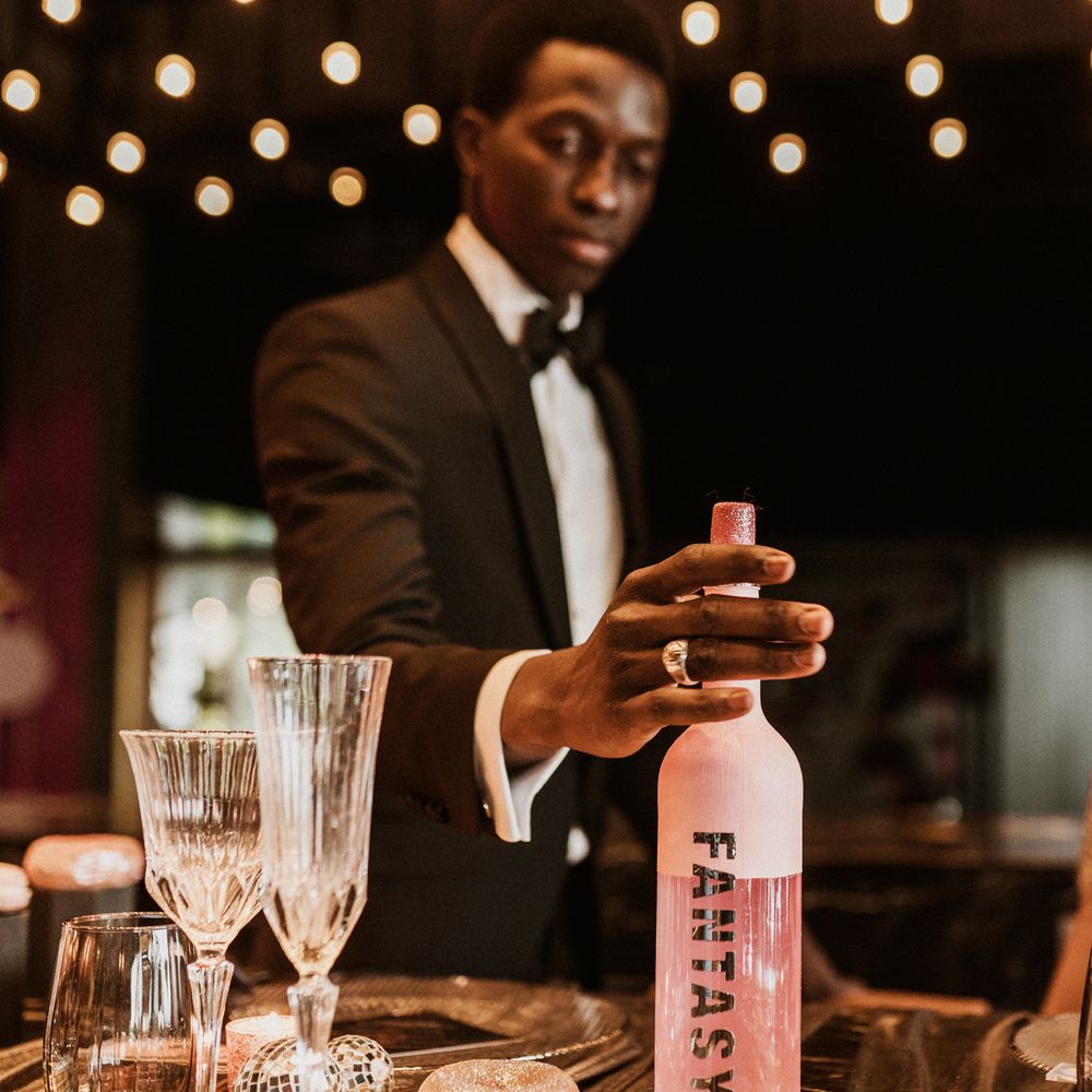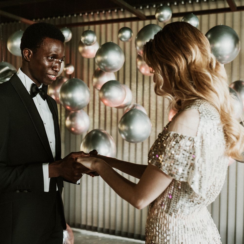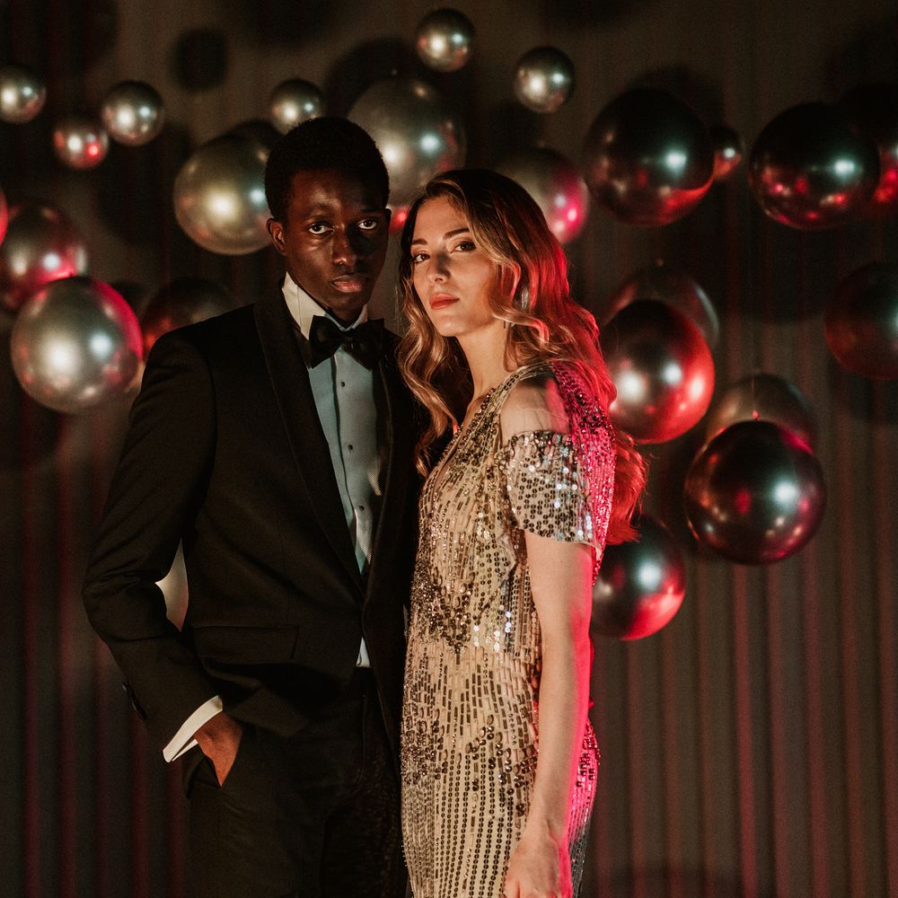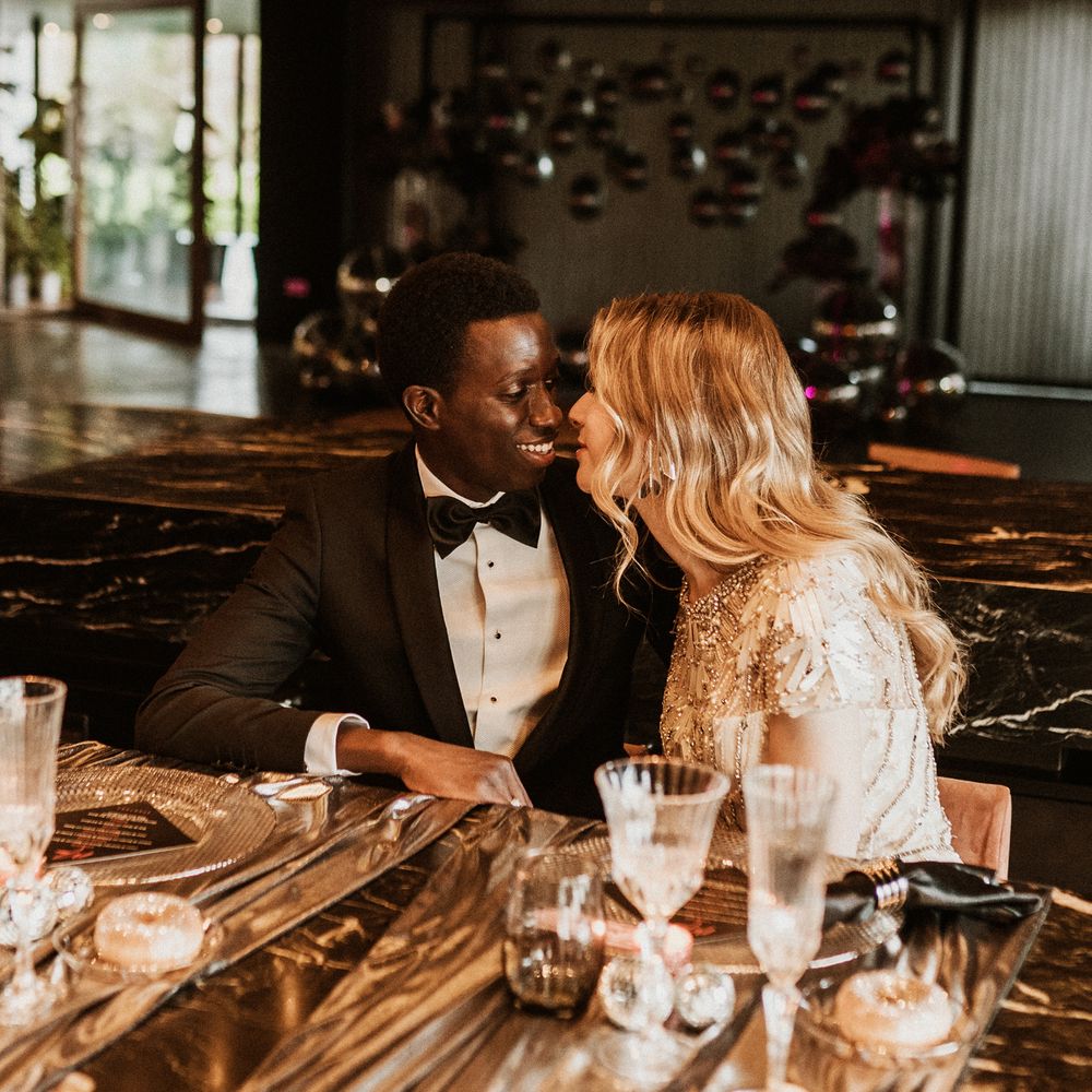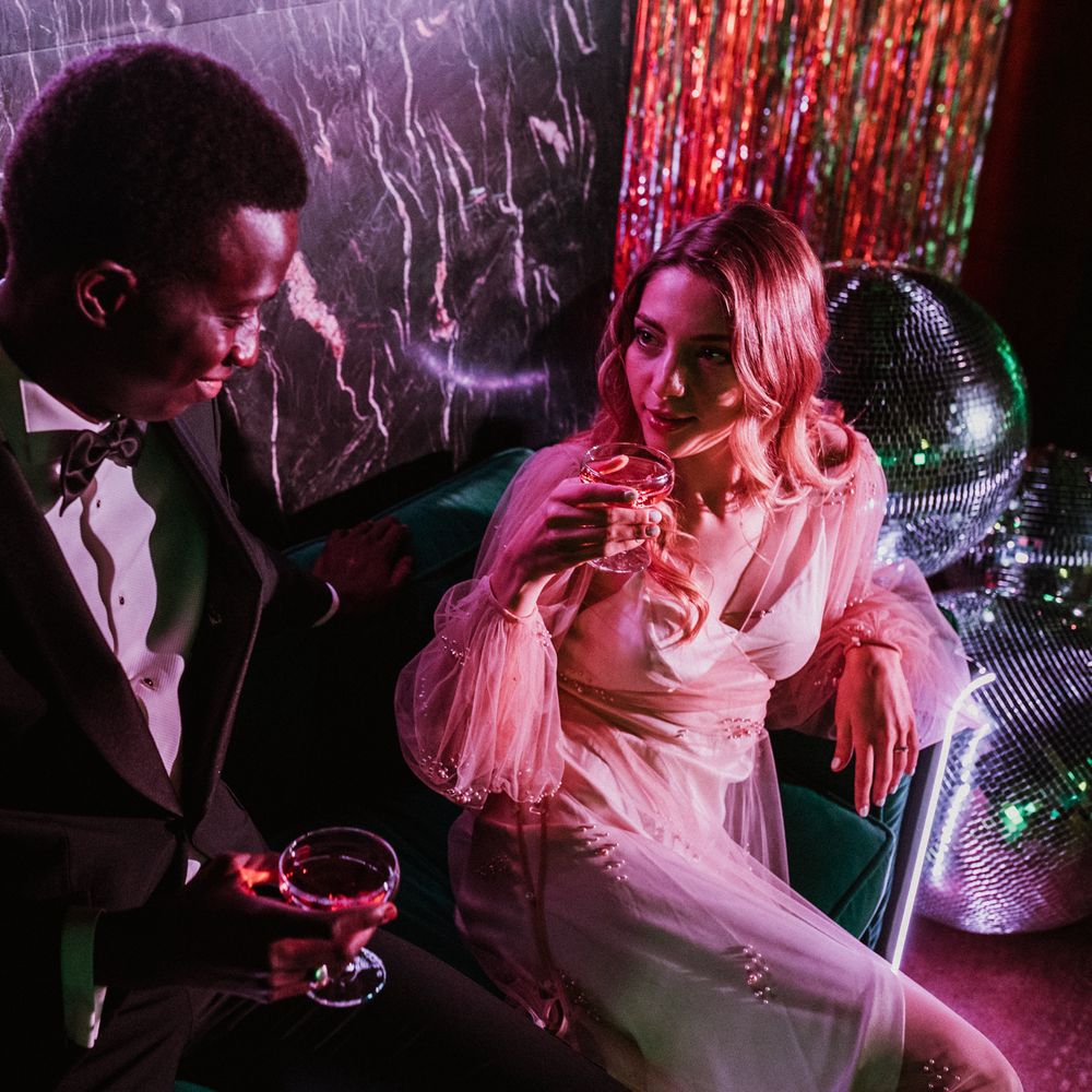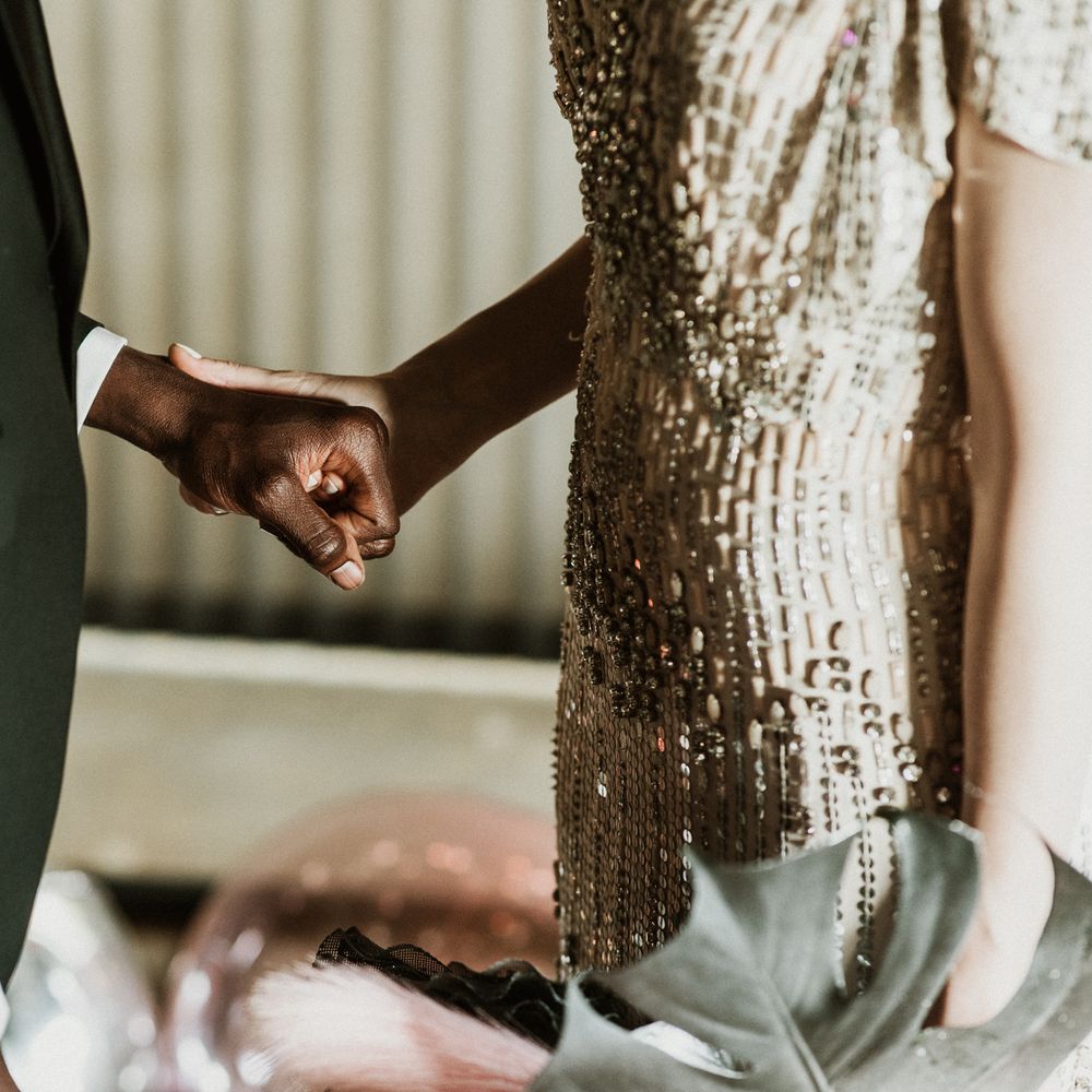 Fantasy wedding shoot inspired by the lights of disco balls, the glitter, the colour pink and the frenetic rhythm of the parties. It is a session with strength, character, full of optical illusions and sensations, transmits joy, elegance and is a tribute to many times and transcendental and relevant aesthetics such as art deco, the time of agitation social and the excesses along with the crazy 70's in which Saturday Night Fever made us dance non-stop. Something new, extraordinary, beautiful, simple, but with the ability to envelop you in a real fantasy.