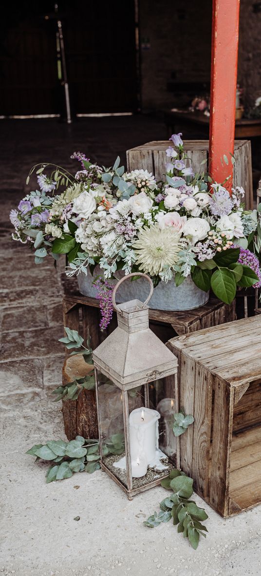 We wanted the flowers to ooze romance with a modern edge. Sarah used a colour palette of blush, bieges and deep burgundy with caramel Carnations, Astrantia, waxflower, chocolate Lisianthus and reflexed Menta Roses.