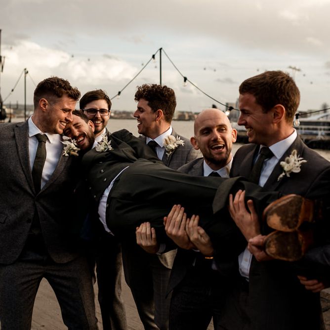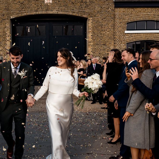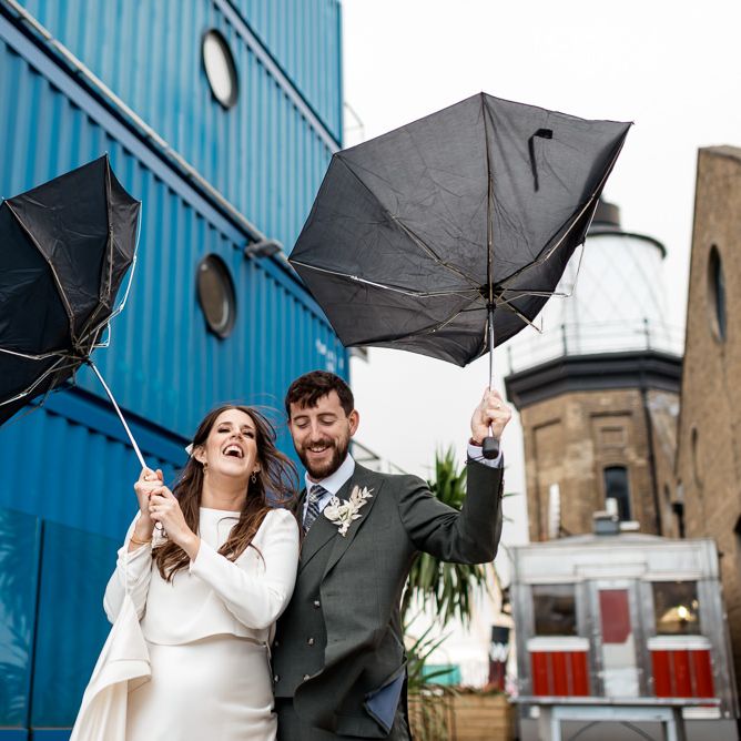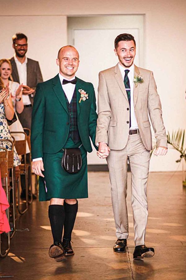 Trinity Buoy Wharf Same-Sex Industrial Wedding with Green Suit