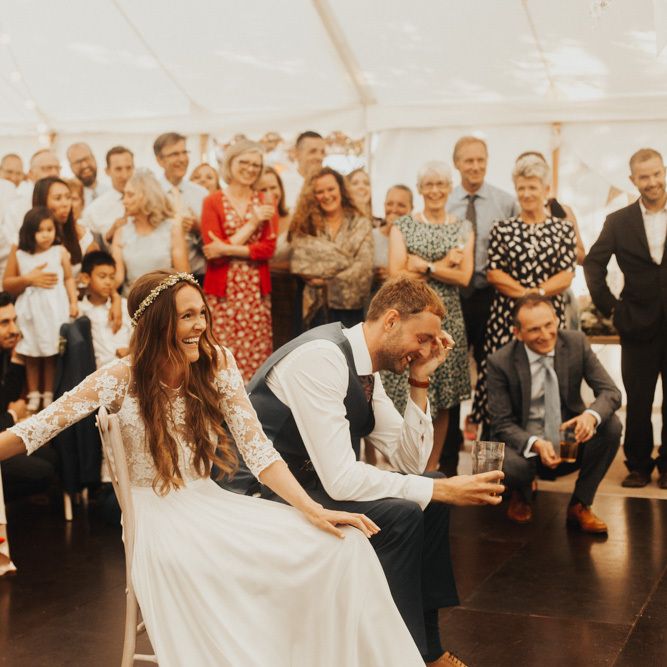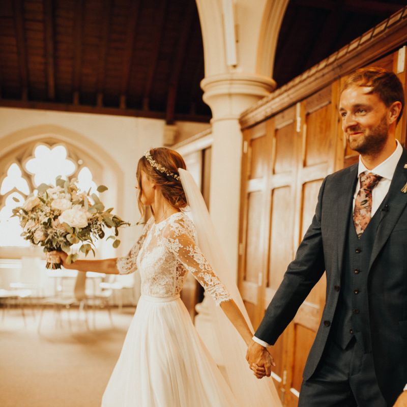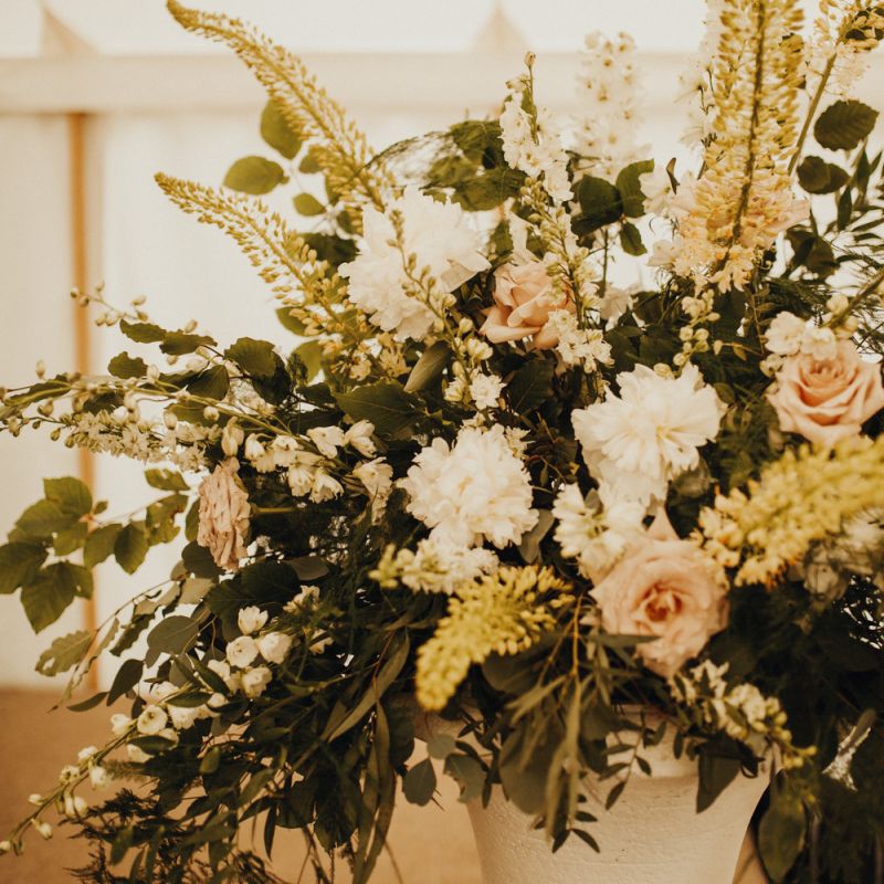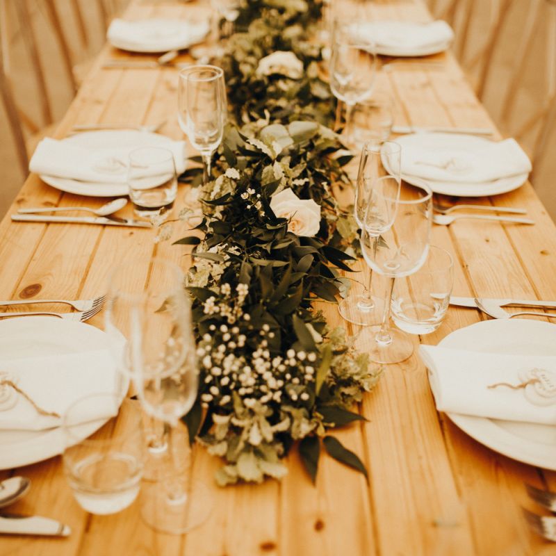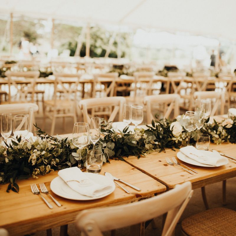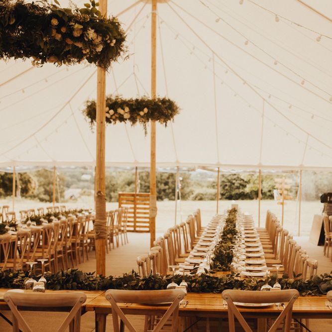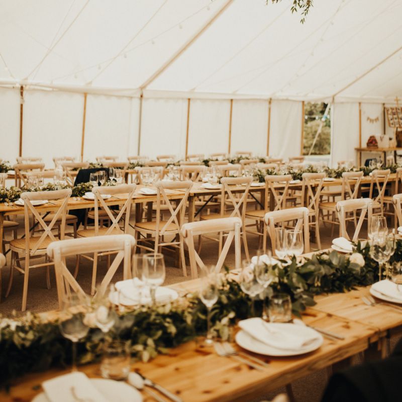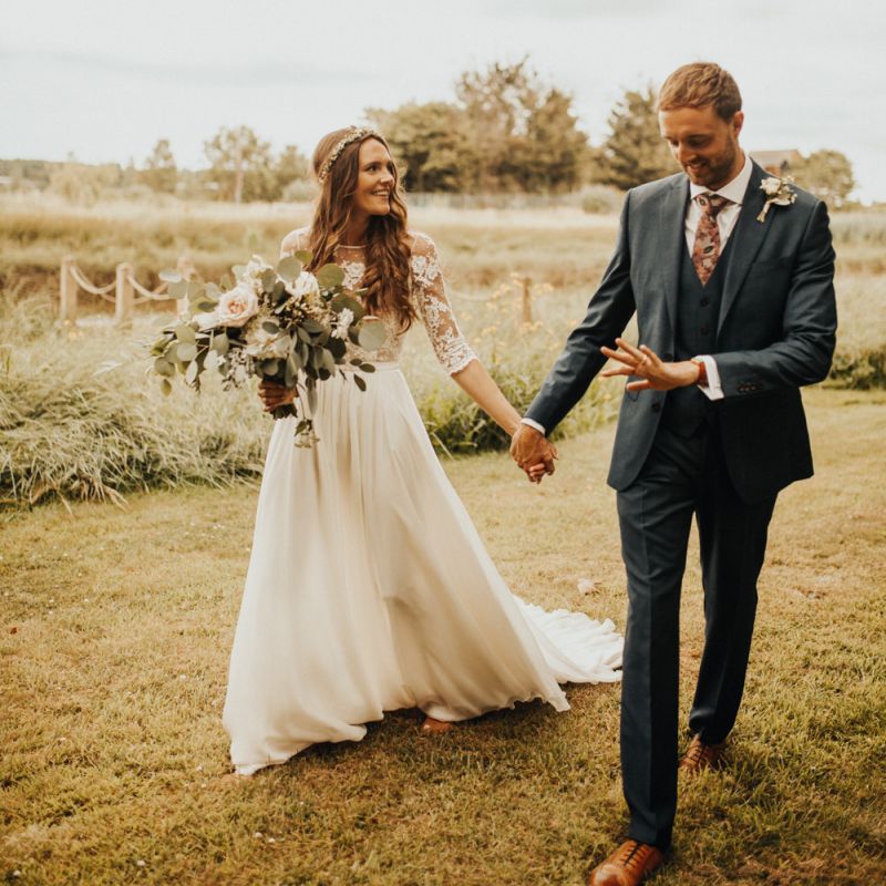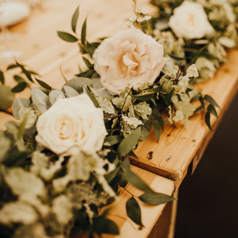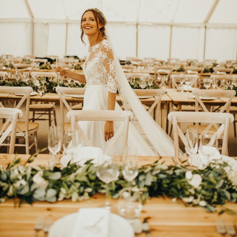 We wanted a relaxed traditional wedding with a rustic Devon vibe. We are both big on plants and flowers and wanted to dress up our marquee with beautiful foliage/flower garlands and installations. The colour scheme was dusky pink, sage green and white. It was important to both of us that our day was chilled out and filled with as much laughter and love as possible - We knew this part would definitely be achievable as our guest list was made up of all our favourite people!