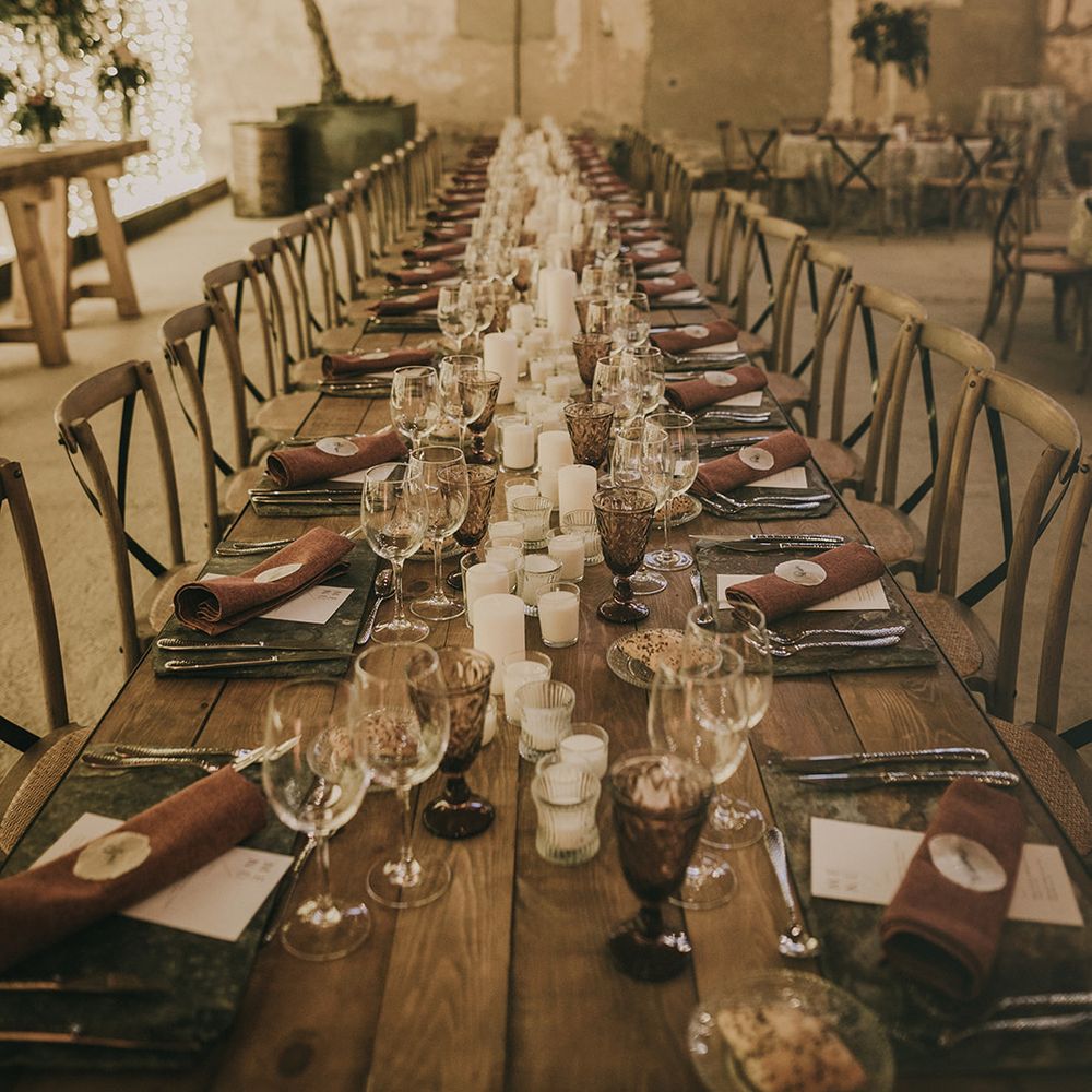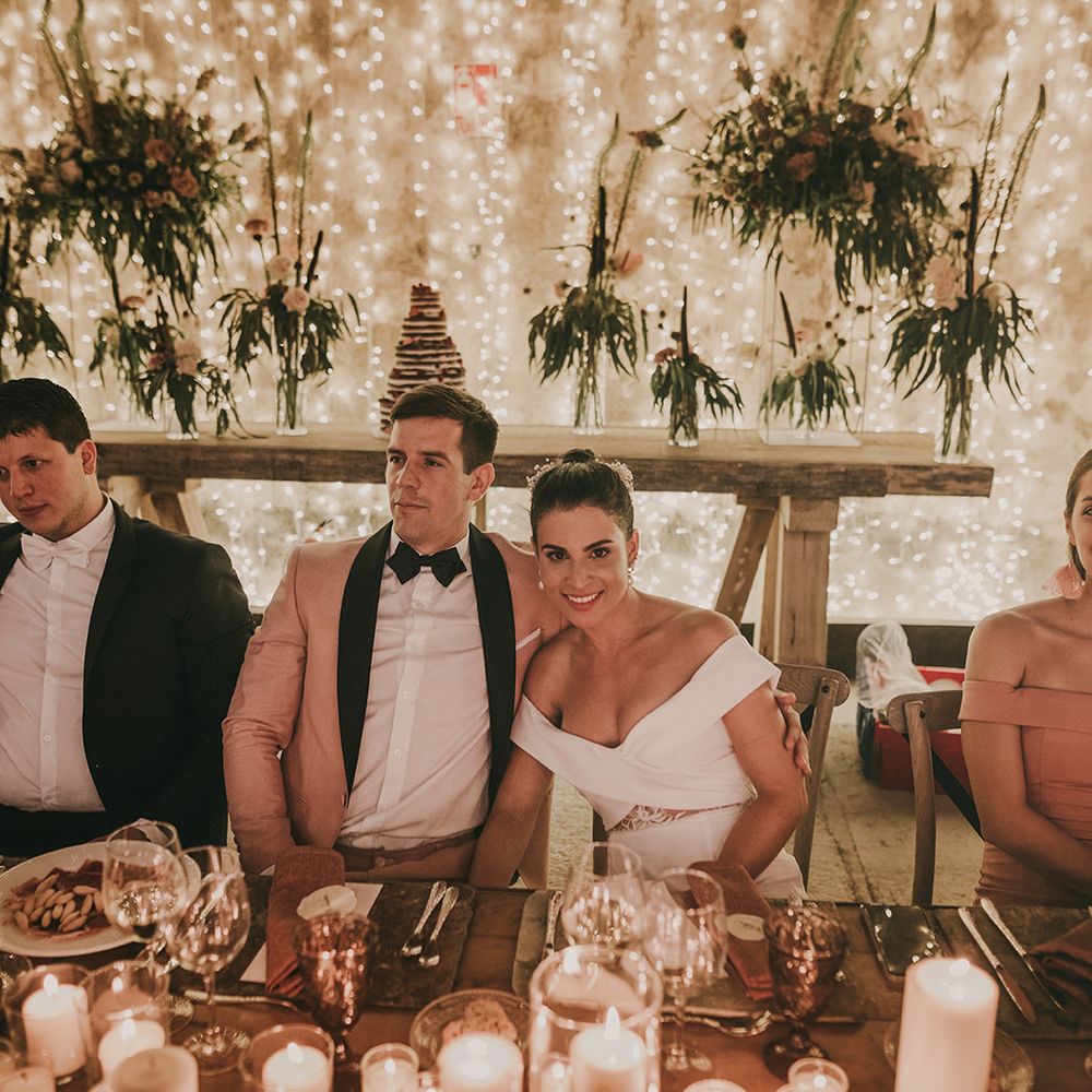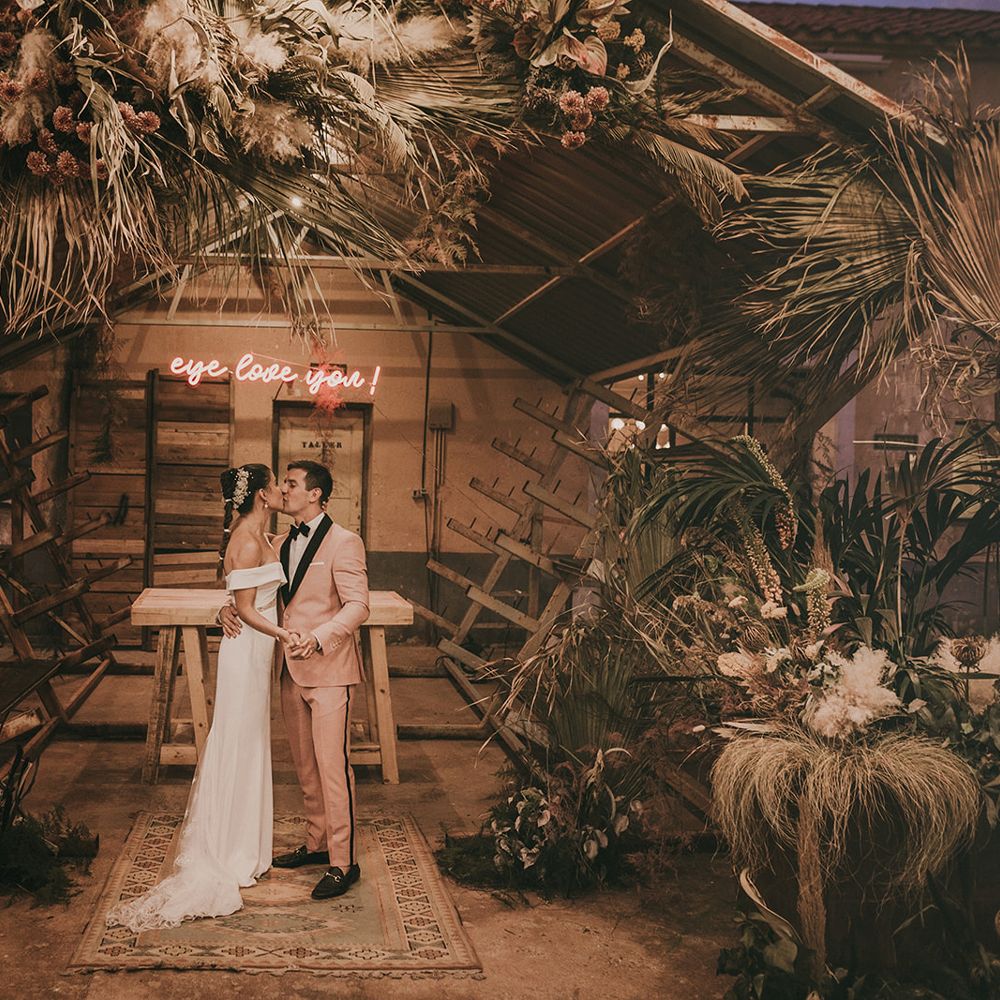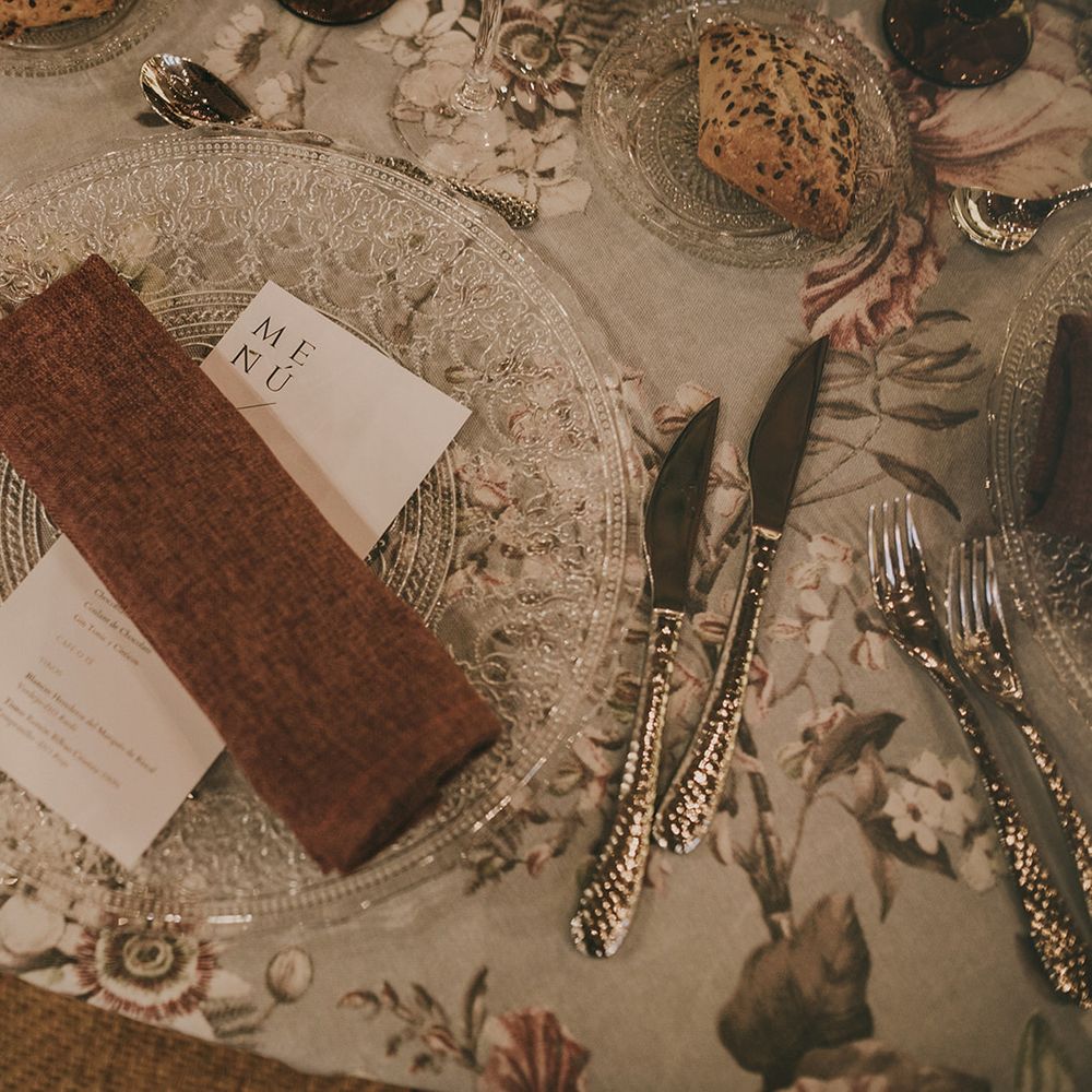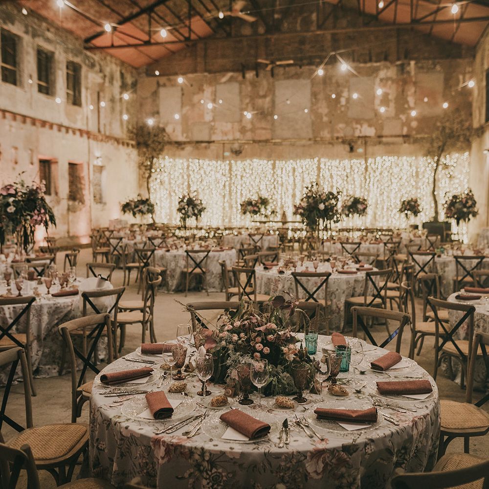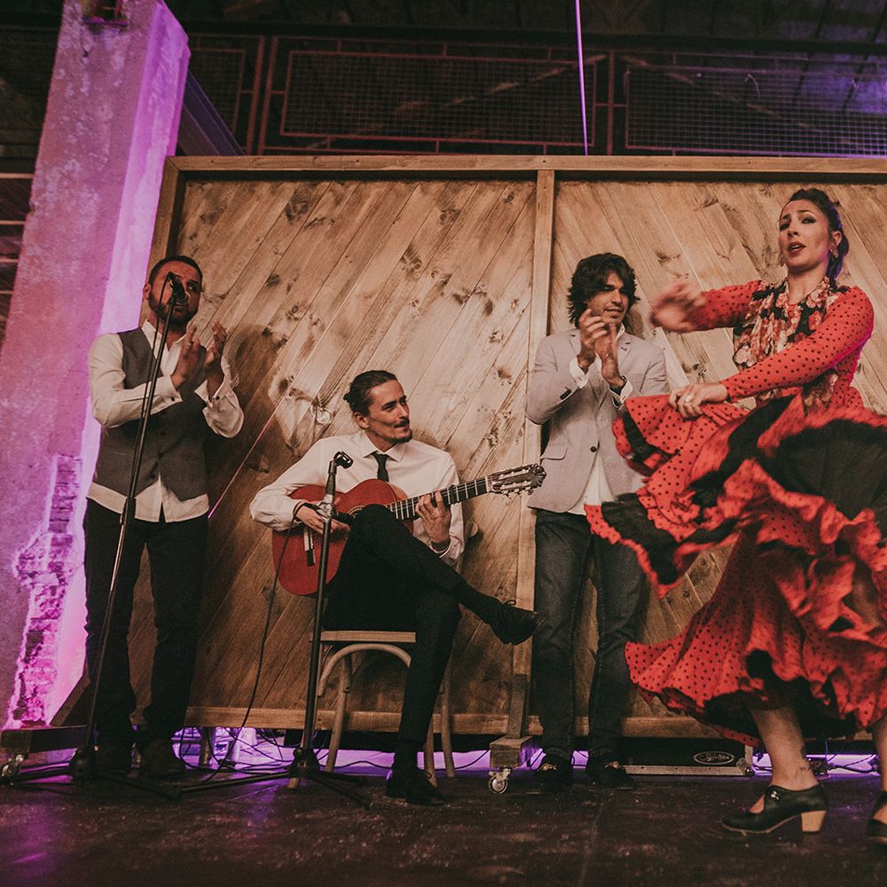 For the design of the wedding, we were inspired by the underground clubs. The guests did not know about the venue until the day of the wedding. In each room something very special happened, for example, the dinner was enriched by a flamenco group performers. For the decoration, we used a very decadent aura that was included in the colour palette, the flowers and in the rest of the decorative elements.