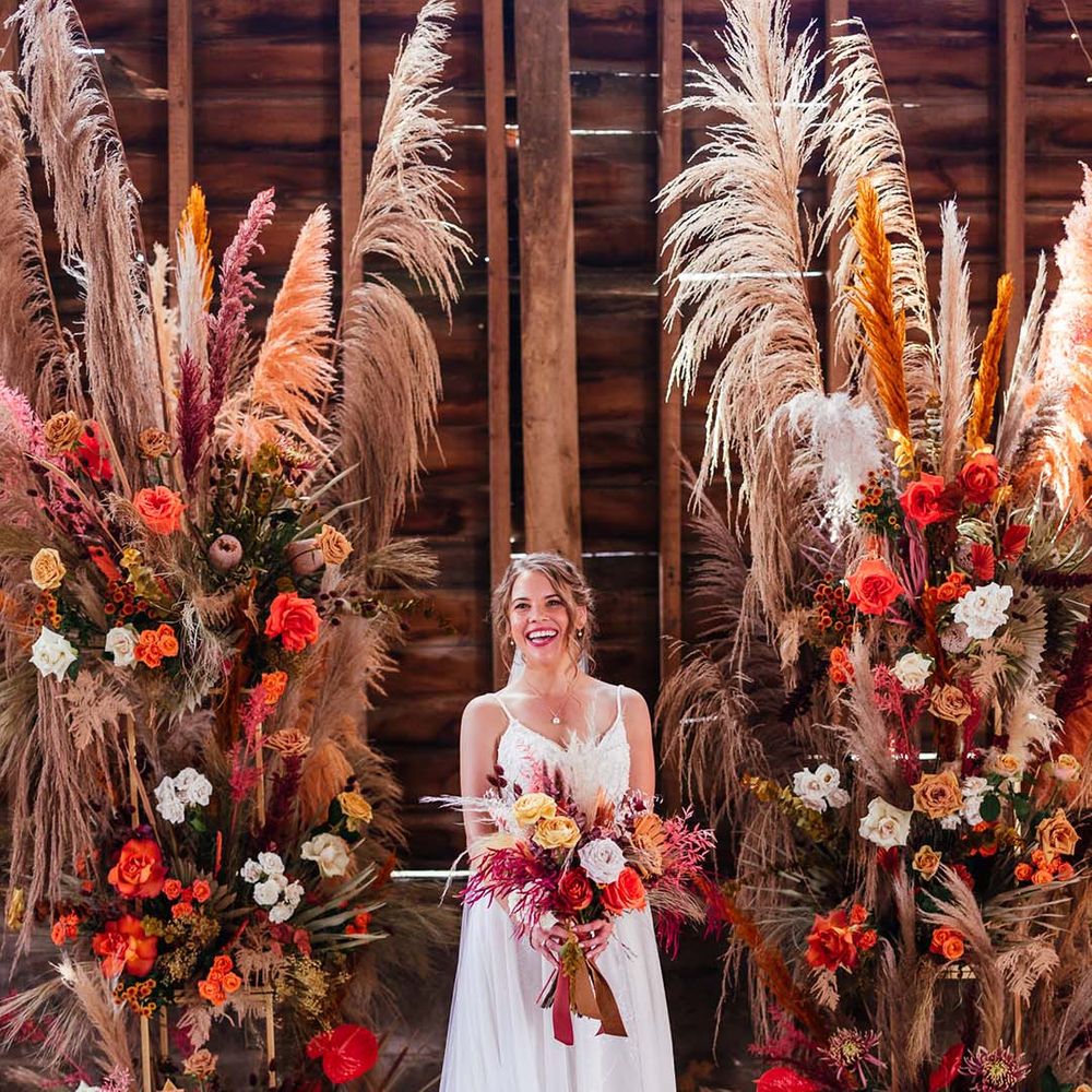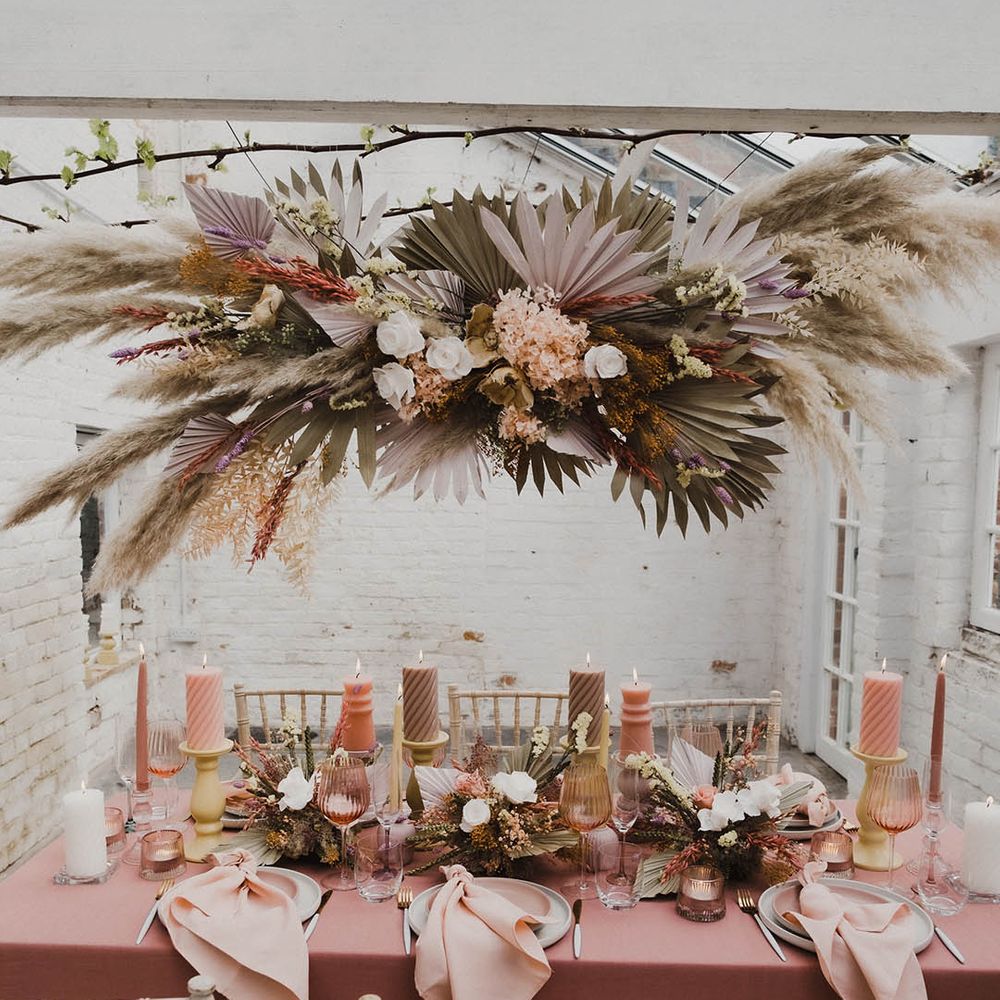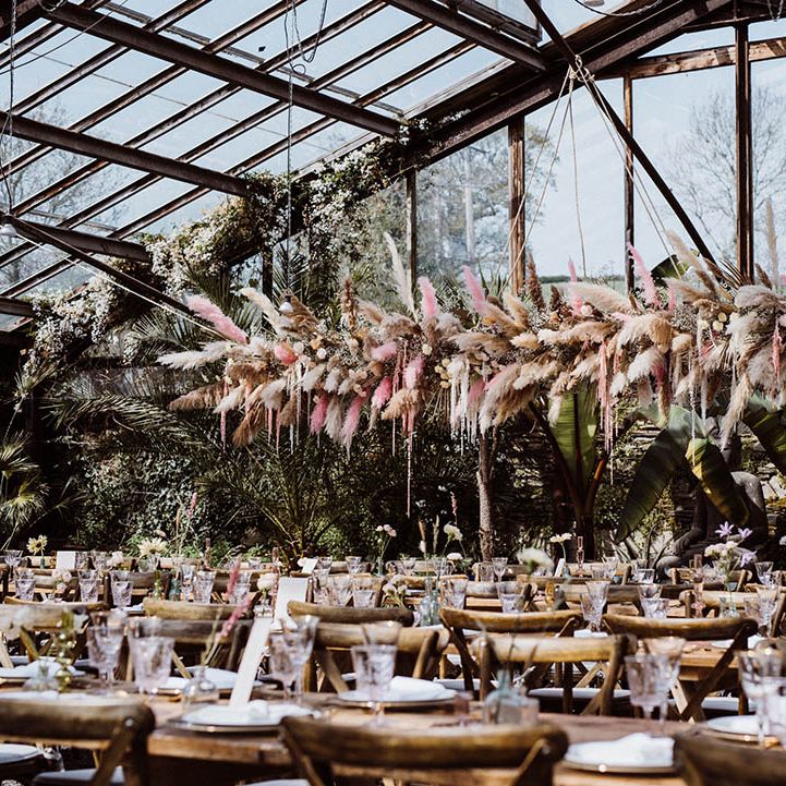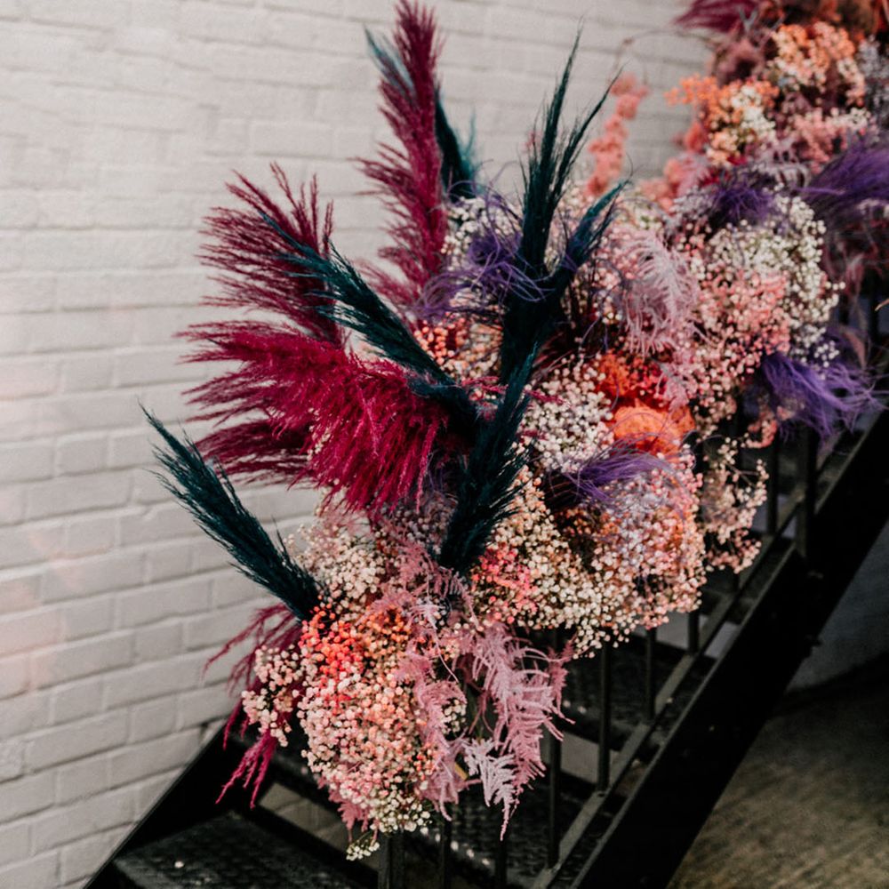 Industrial Boho Wedding Styling at The Winding House with Pampas Grass Installation