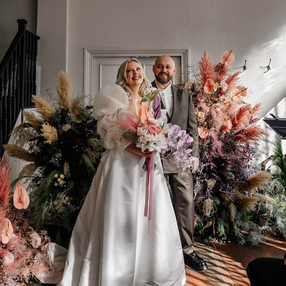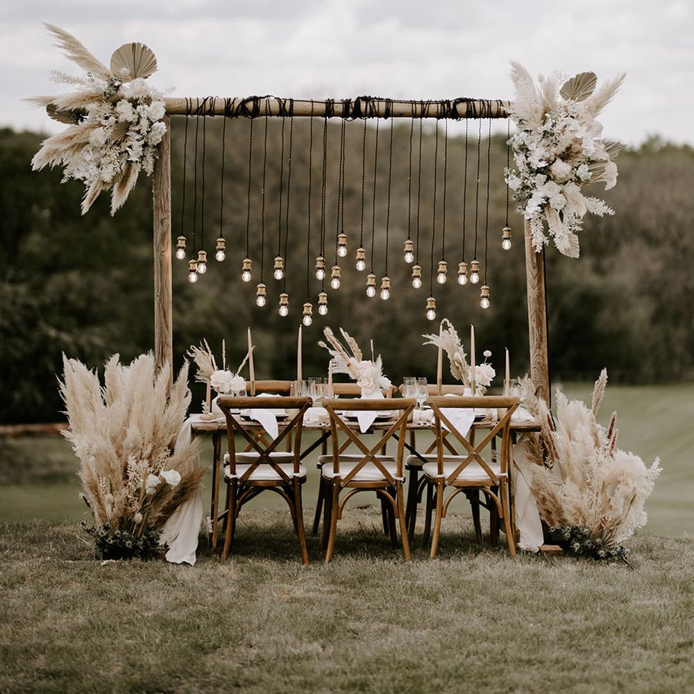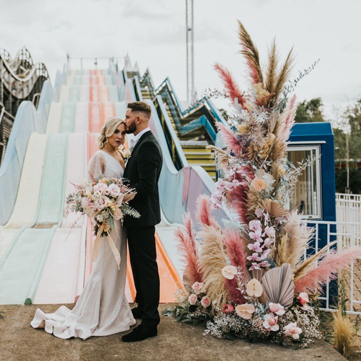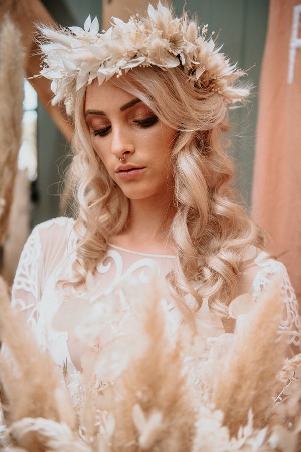 Industrial Boho Wedding Styling at The Winding House with Pampas Grass Installation