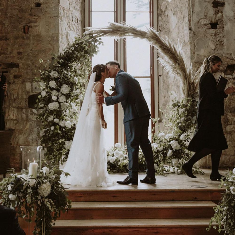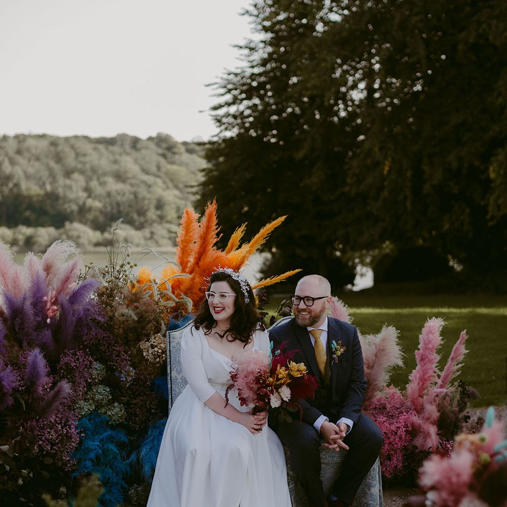 Lulworth Castle Wedding with Pampas Grass Moon Gate & Neon Sign