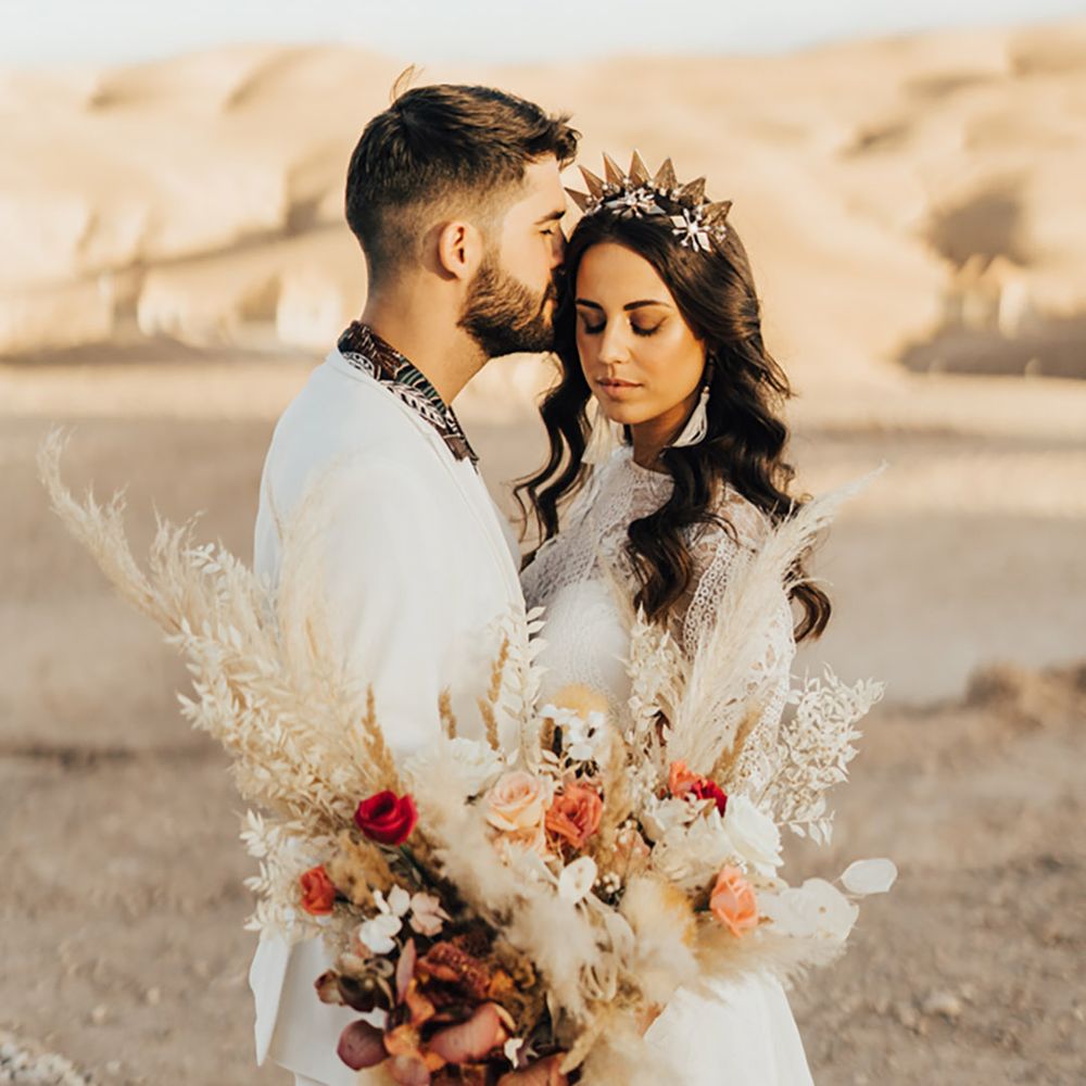 Feather Headdress & Pampas Grass Moon Gate For Spanish Wedding