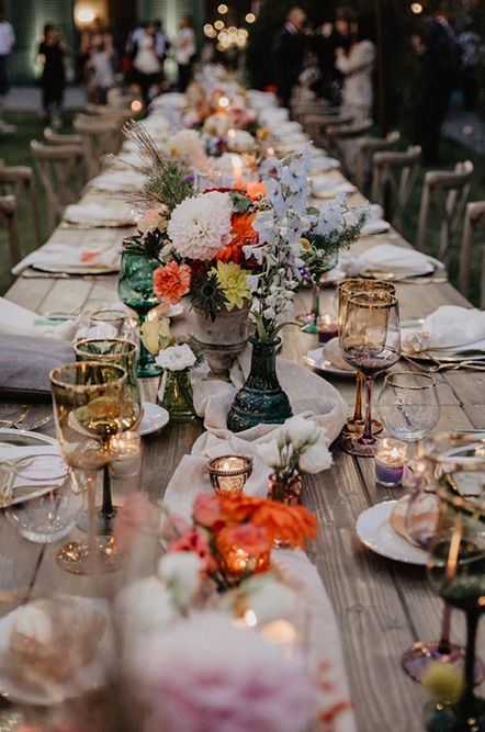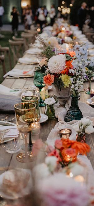 Flower Centrepieces & Pampas Grass at Romantic Italian Wedding