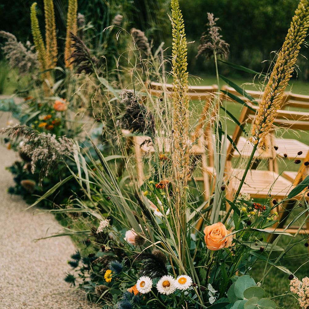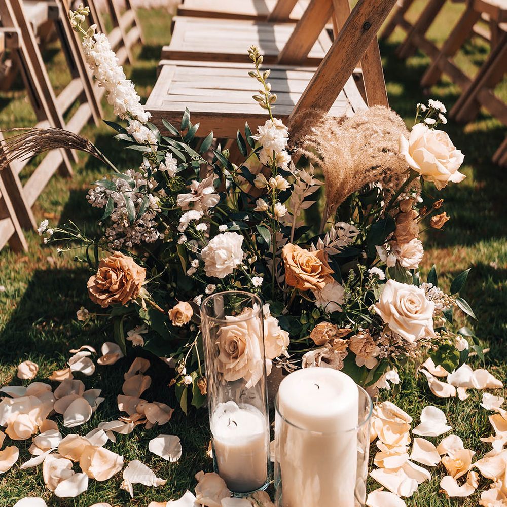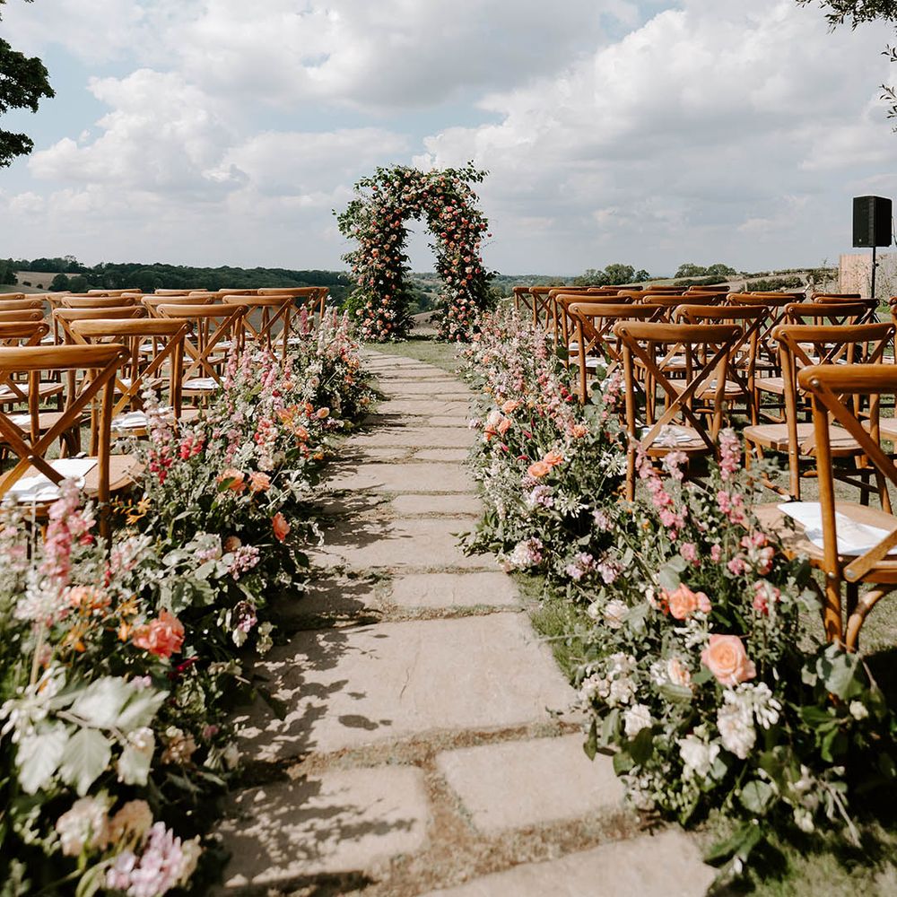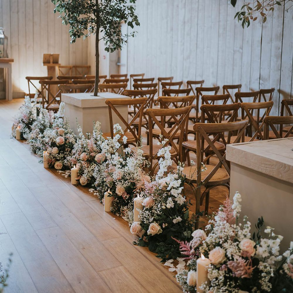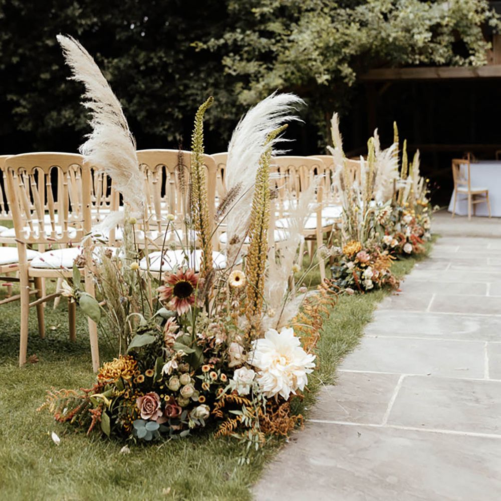 wedding aisle decor for outdoor wedding at Botley Hill Barn.