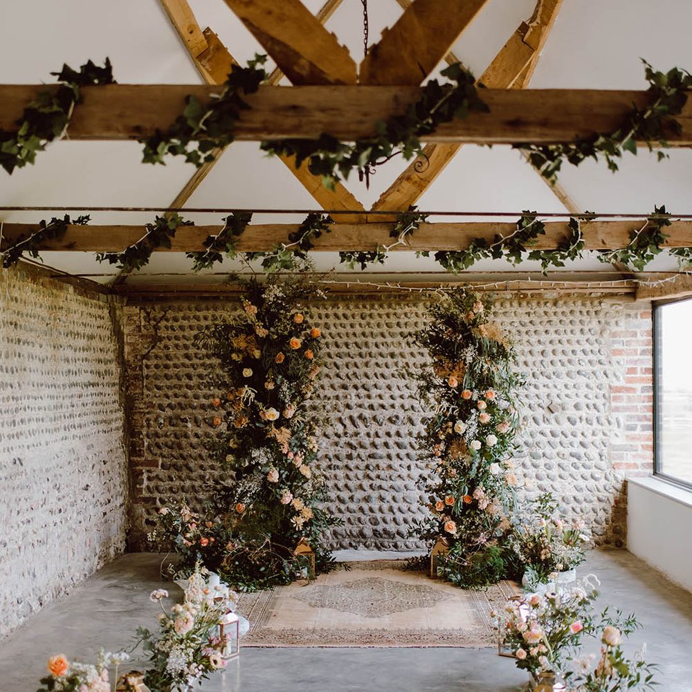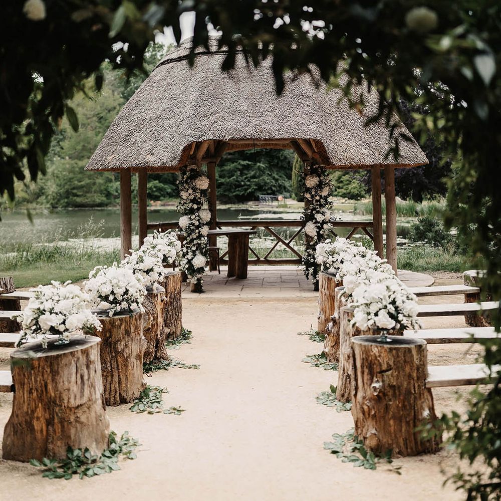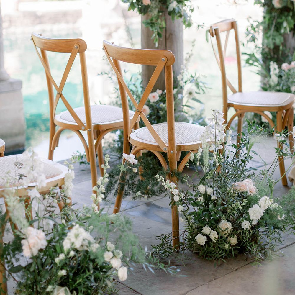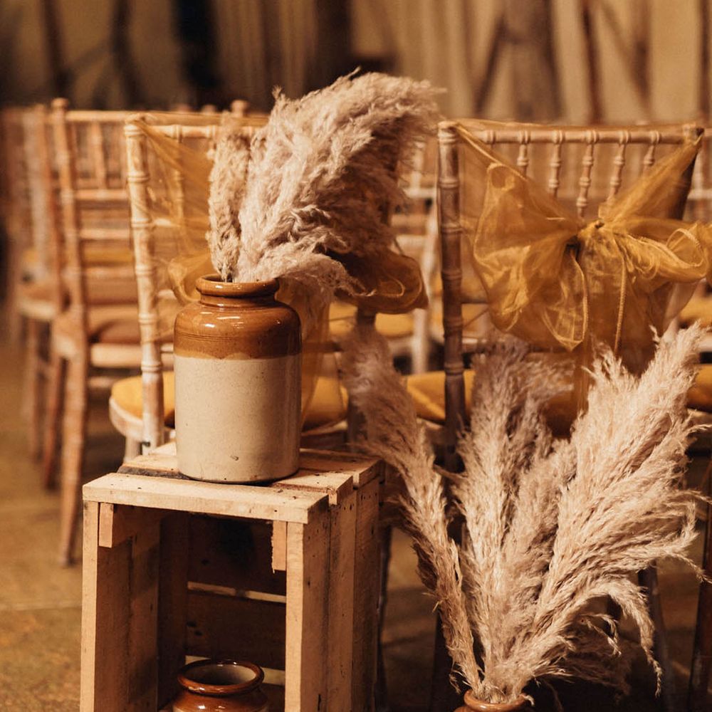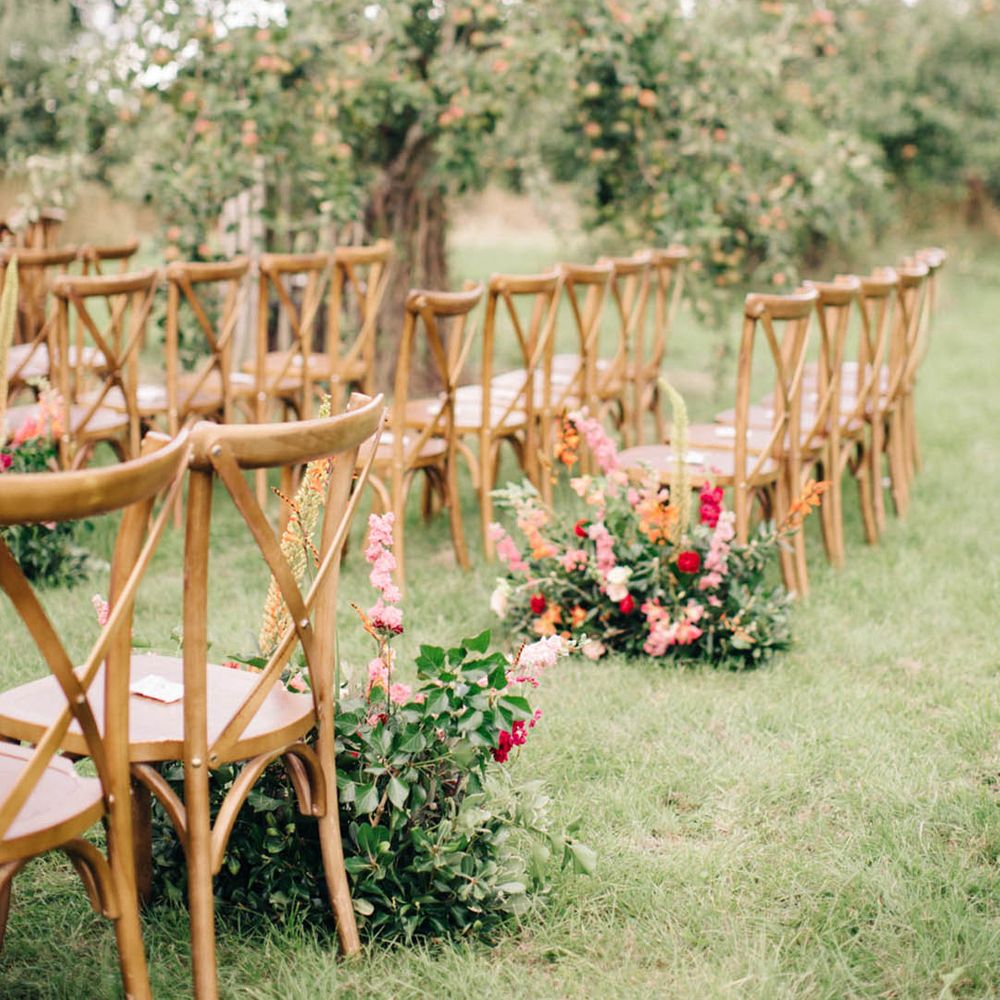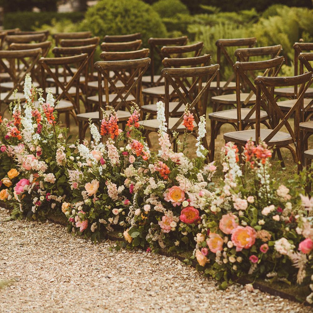 wedding aisle decor for outdoor wedding at Botley Hill Barn.
