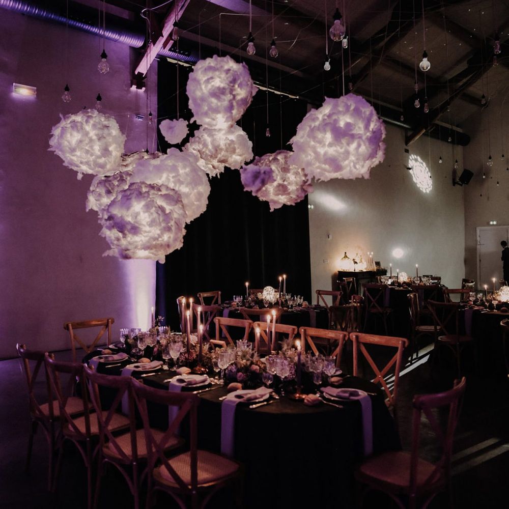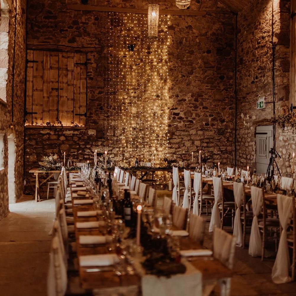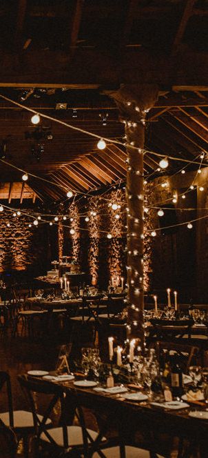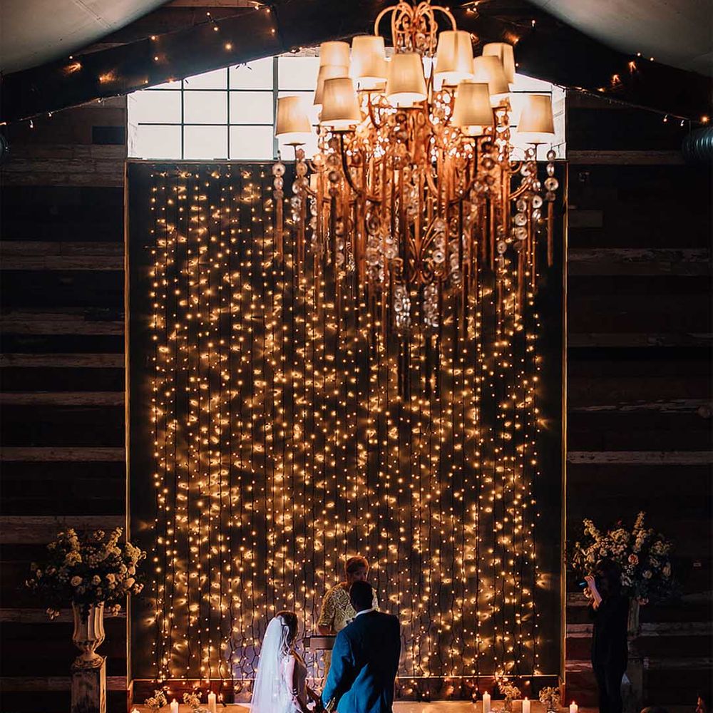 Festoon Light Canopy and Indoor Trees for Humanist Wedding in St Andrews