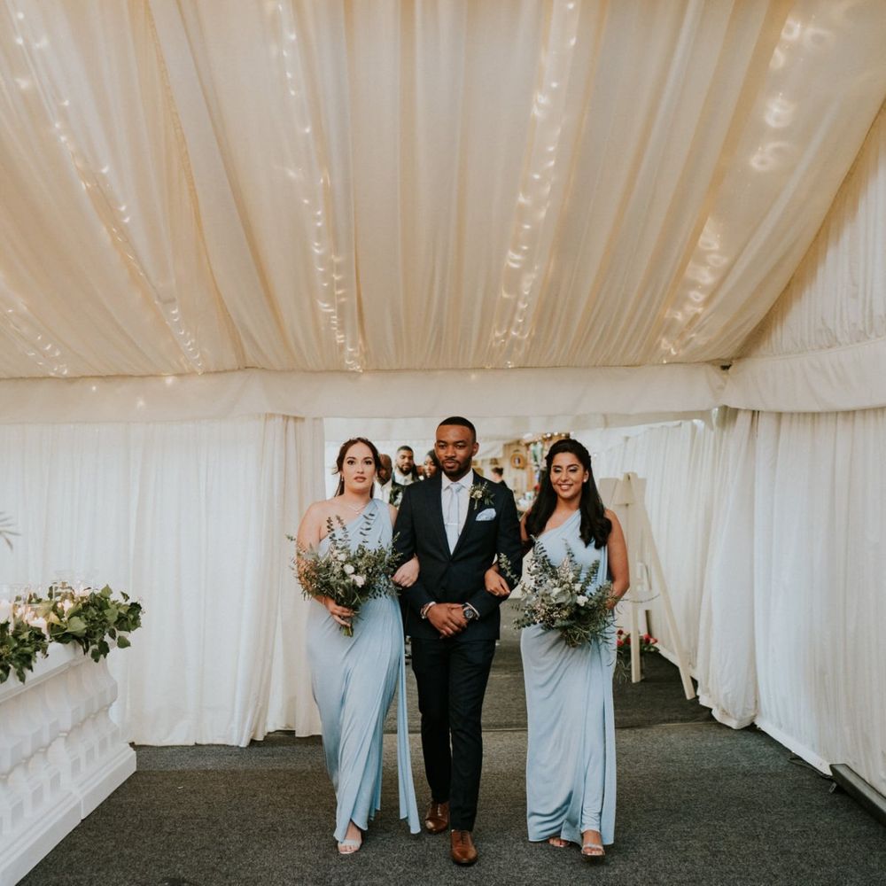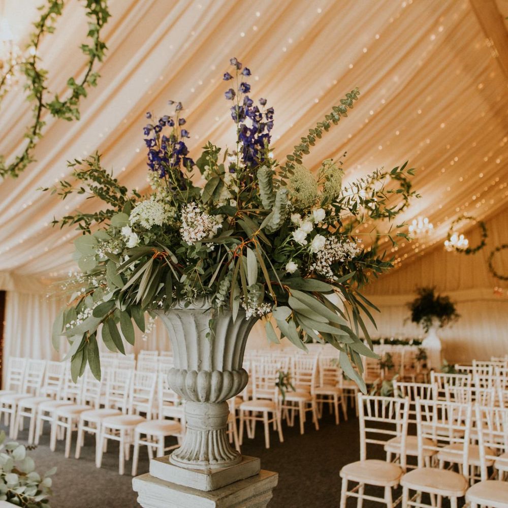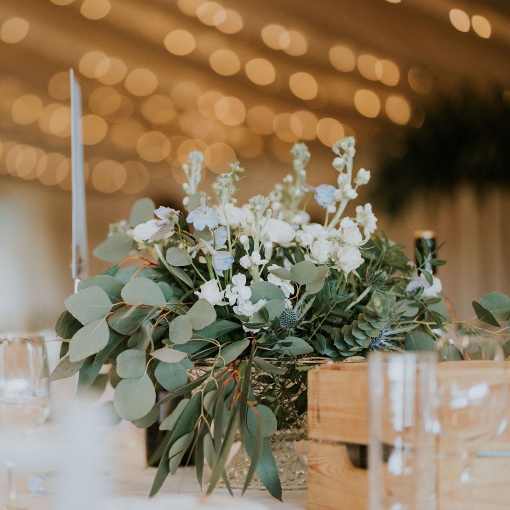 I wanted it to be a relaxed boho chic feel, with slight classic touches. We settled on the colour of dusty blue which I felt would complement our spring wedding, I think it's such a delicate and romantic colour. I wanted the day to be filled with little personal touches for us and our guests. Pinterest was my kryptonite and I got most of my inspiration from there! We wanted to keep the flowers quite green, full and leafy with accents of our dusty blue running through.