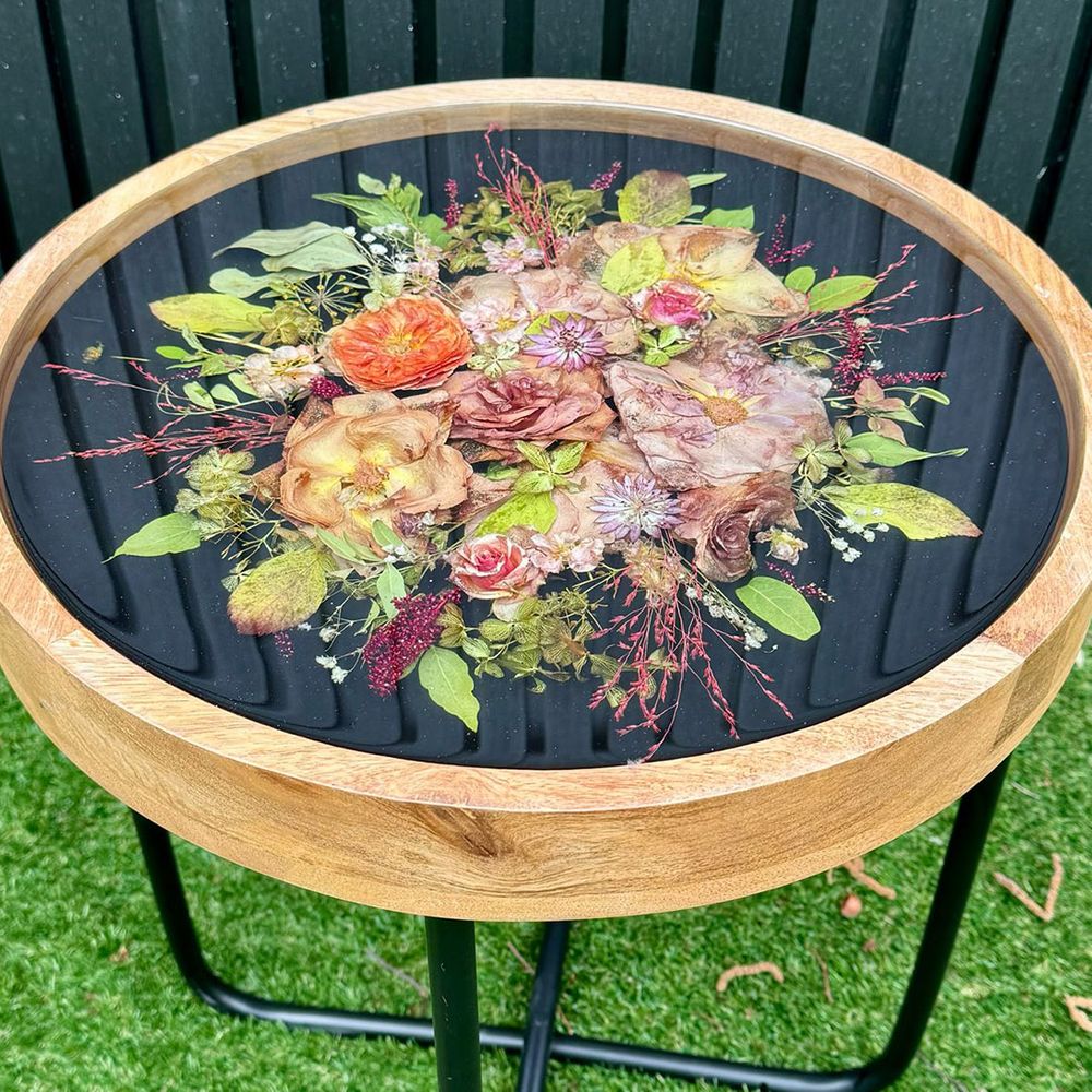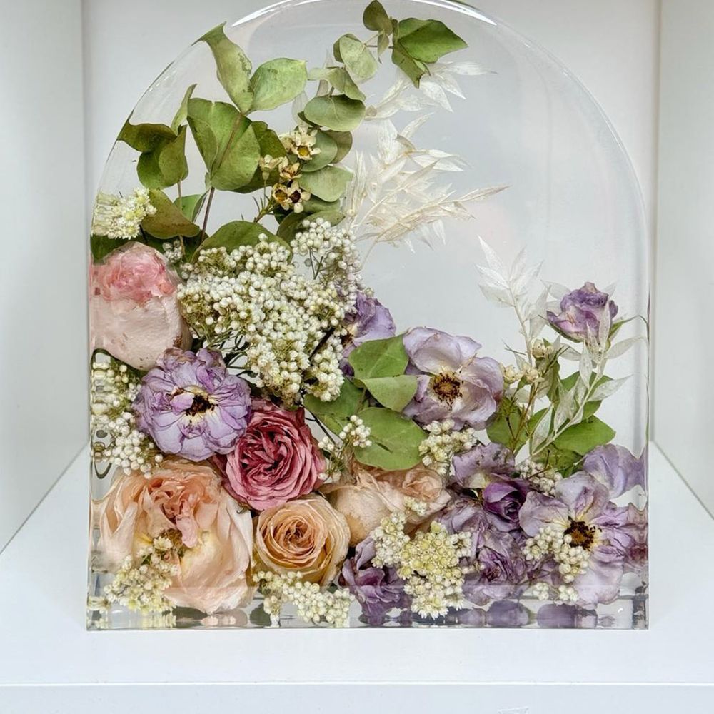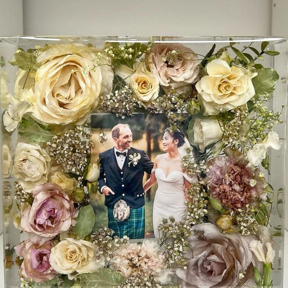 Most keepsakes are static — photos, rings, maybe a shadow box. Pressed flowers are part of the day itself: the actual petals you held as you walked down the aisle. And unlike a bouquet hidden in a box, they can live as art in your home — something you see every day.