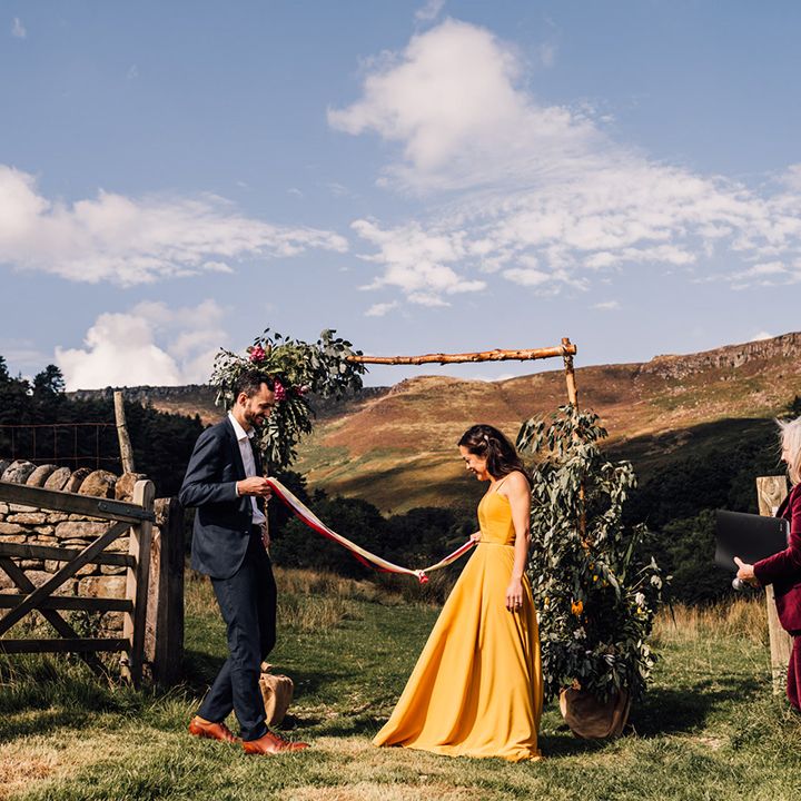 Irish Country Wedding in Marquee With Bridal Coat And Flower Installation