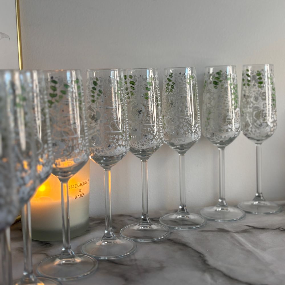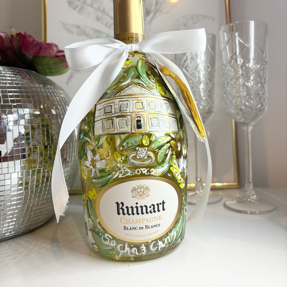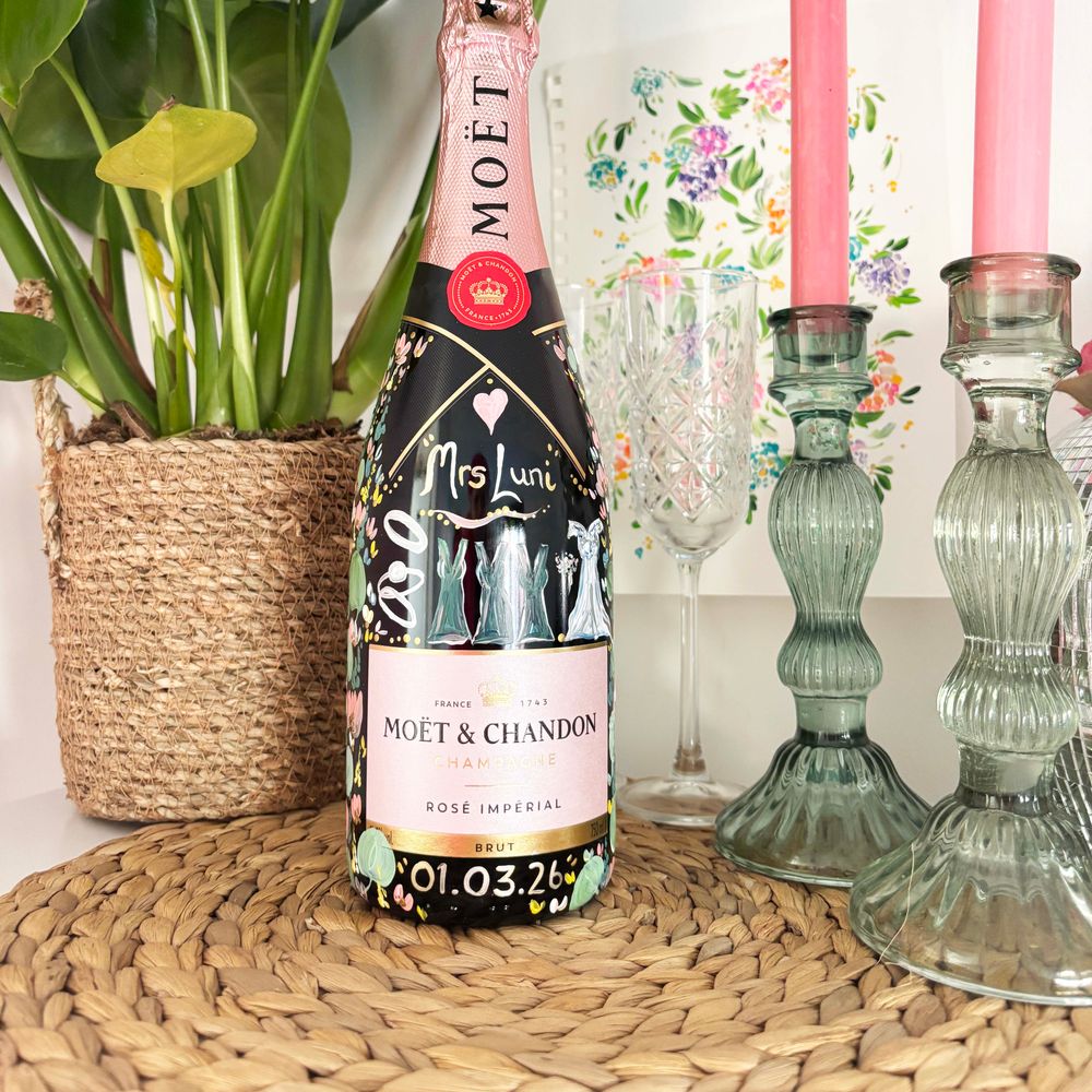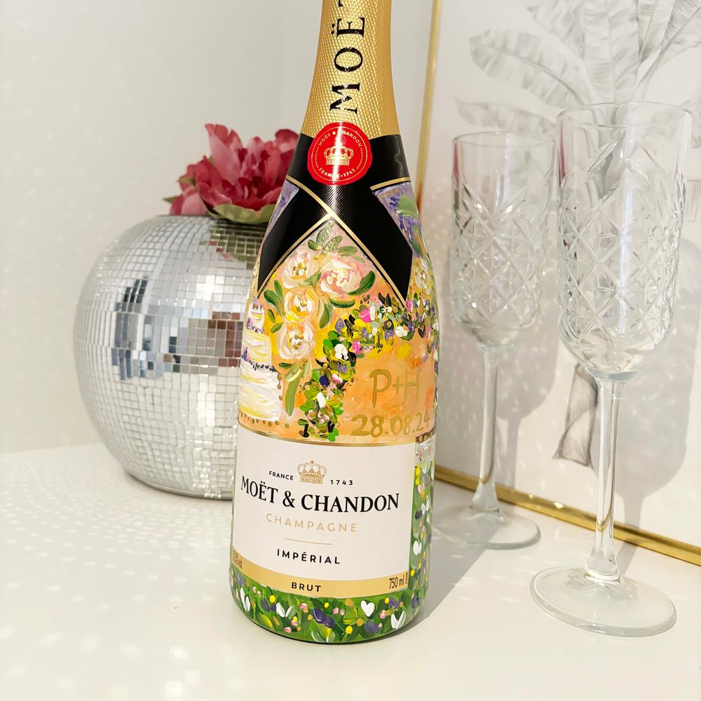 All of the Print creates hand-painted, personalised champagne bottles, flutes, table centres and keepsakes inspired by your wedding story. Every piece is custom-designed by Hampshire-based artist Rachel, blending meaningful details with beautiful design. https://www.alloftheprint.co.uk/ All of the Print is a small, design-led business creating bespoke hand-painted gifts and keepsakes for weddings and meaningful celebrations. Founded by printed textiles designer Rachel, each piece is made to order and crafted with your personal story in mind – from champagne bottles painted with your wedding venue, personalised champagne flutes for the wedding party adorned with the bouquet florals and names, to bridal party flutes, candles, vases, and seasonal items. Whether it’s a bridesmaid gift, a wedding favour, a table centre piece, or a memento of your day, each item is created with care, creativity, and a deep love for detail.