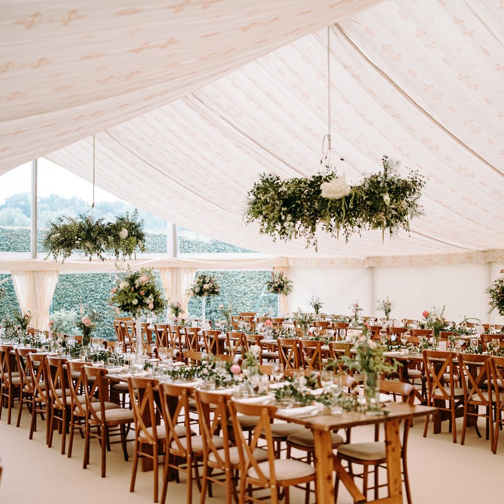We take pride in creating unforgettable occasions, providing high quality, bespoke marquees and event hire. We will work with you to create your dream event using our range of Clearspan and Traditional marquees and extensive choice of furnishings, bespoke linings and event facilities. We are proud to work with British-designed luxury marquees, and stock both Clearspan frame marquees and Traditional pole marquees in a wide range of sizes to suit intimate weddings of 60 guests, through to larger celebrations for 200+. The type of marquee you choose can be used to reflect your unique style, and can be further personalised with our wide range of lining, lighting, and furnishing options. In addition, we are one of few marquee companies to also have our own comprehensive range of luxury toilets, generators, showers and walk-in fridges. Acting as the sole supplier takes pressure away from your wedding planning; ensuring you have everything you require so you can relax and enjoy your wedding day. We are full of ideas to create bespoke spaces and are here to help you plan your wedding. Our experienced team of event managers and skilled marquee team specialise in building marquees in complex sites and would be delighted to discuss your requirements.