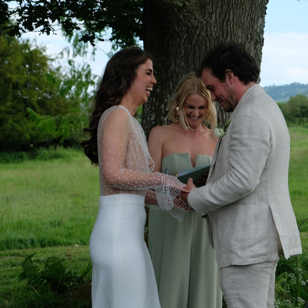 From the moment we met Skye, we knew our wedding ceremony would be special and memorable! Her infectious enthusiasm and vibrant personality instantly put us at ease. She was incredibly organised and brought some really fun ideas to the table. On the big day, the ceremony was a perfect blend of heartfelt moments and laughter. It truly reflected our personalities and love story. Our guests She made everyone feel comfortable and was really engaging and entertaining. Thanks to Skye, our wedding ceremony was more than just the "official" part – it was a highlight of the entire day. It was colourful, fun, and incredibly special. We can't recommend her highly enough!