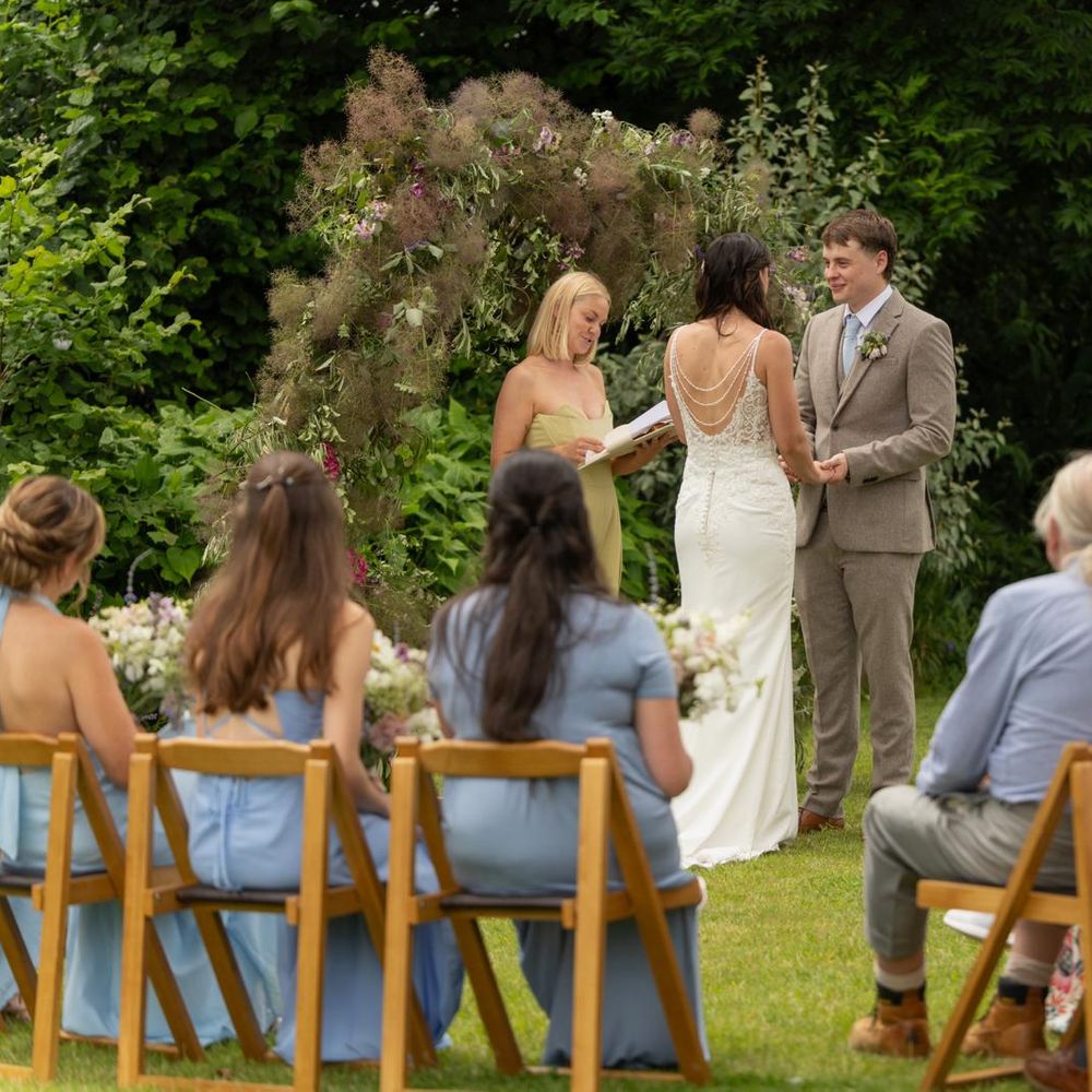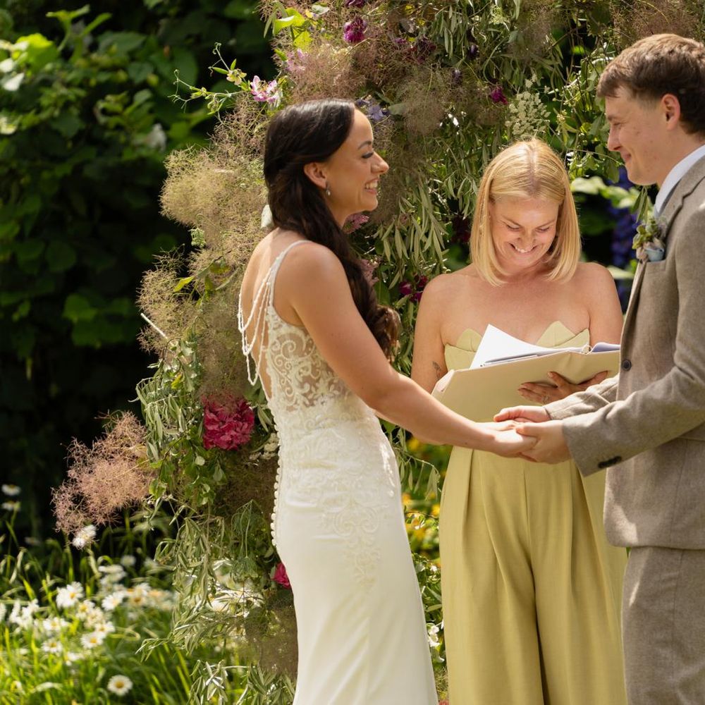Skye was incredibly open to all our ideas, no matter how out there some of them might have seemed. Her patience and understanding were lifesavers during the planning process, especially when we were feeling overwhelmed. Skye went above and beyond by helping us set up the ceremony space on the day, her calming presence and experience were invaluable. During the ceremony, Skye took our love story and transformed it into something even more beautiful and meaningful. It felt like she knew us both on a personal level, which made the entire ceremony so bespoke to us. We can't thank Skye enough for making our wedding ceremony an unforgettable experience and one we will treasure always.