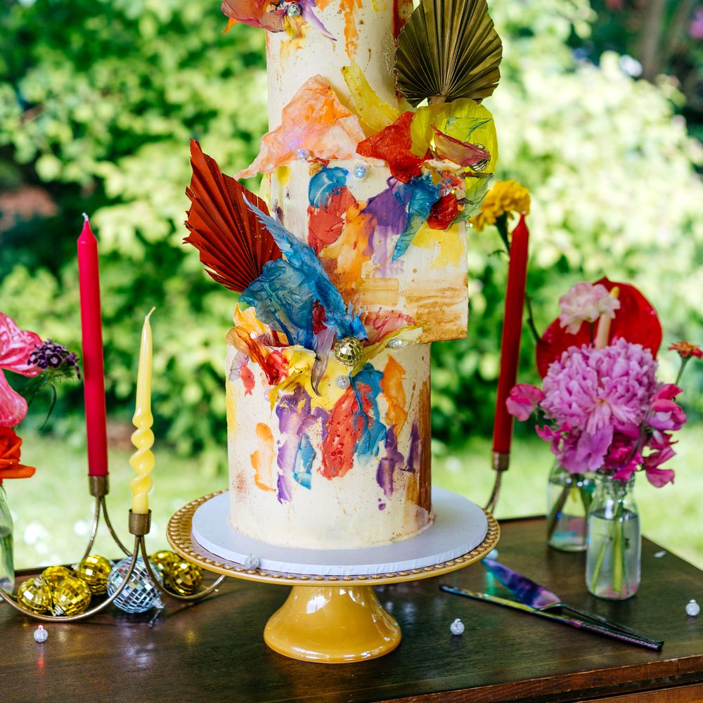I quote individually for each event, but most clients spend between £550 and £1000 with me. Each quote is based on the number of people you'd like to cater for and what's required to produce the final masterpiece. Visit my blog for more of a deep dive on what makes up those production costs, but for cakes, elements to factor into the quote include the size, flavours and architecture of your cake, and the complexity of the design. For cake canapés, the range and number of items you'd like to provide for each guest - 2 to 5 individual items per person - also matter. I don't go in for haggling on prices, but if you've given me a realistic, specific budget, I'll always do my best to include an option for that price.
