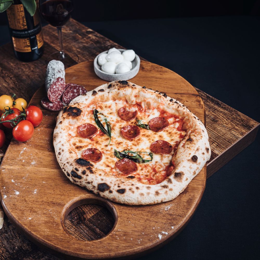 Our pizzas rock! We're specialists in providing Premium quality Neapolitan pizzas for weddings of 70 guests upwards, all served at speed and with a smile from our quirky truck Dee Dee. We're specialists in providing Premium quality Neapolitan pizzas for private parties, weddings, festivals and any type of event for 70 people upwards. Our staff are friendly and professional, all in branded uniform. But what really stands us apart is our ability to produce up to 100 pizzas per hour Festival Style, so your guests enjoy the theatre of ordering and collecting their own 11" pizza with very little queuing or waiting around. Think of us as the Kitchen at a lively house party - it's where everyone wants to be and a relaxed place for guests to mingle and chat. We use only the finest ingredients to make authentic Neapolitan pizzas. Our secret recipe Organic dough is made using 00 flour from Napoli and cold fermented for 3 days to develop flavour. No pre-made or frozen dough balls here! All topped with San Marzano DOP tomatoes, fresh basil and Fior di Latte Mozzarella then cooked in 60 seconds under a 500 degree C flame. Soft and chewy crusts that your guests will love!