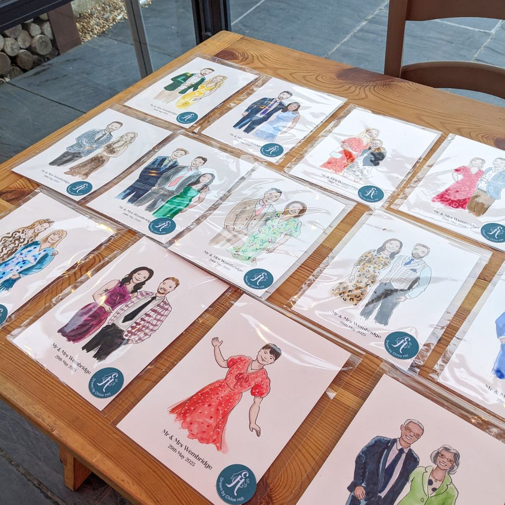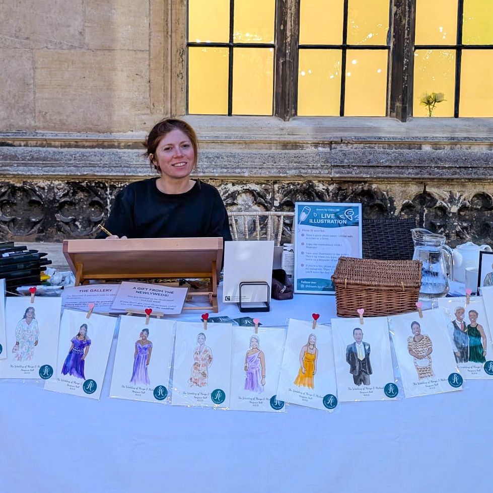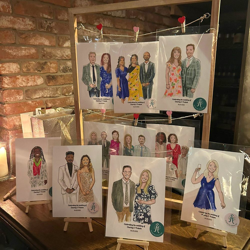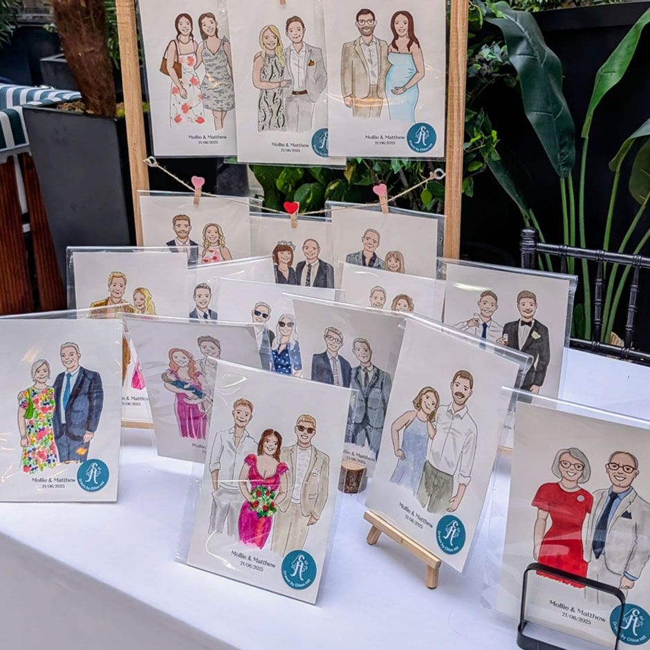 Live illustration for weddings and events - Entertainment that is as unique and special as your guests are! I draw your guests as they celebrate, creating vibrant portraits of them. It's interactive entertainment and a meaningful keepsake in one. Perfect for couples who love unique touches! If you're planning a wedding that's more about creating an unforgettable experience than perfection, you've come to the right place. I create live illustrations at weddings across London and the surrounding counties - giving your guests a truly unique, personal keepsake. I take photos and then draw your guests as they mingle. It's interactive entertainment that creates a real buzz! There's something magical about watching portraits come to life in front of you, and guests love seeing themselves transformed into colourful illustrations that make them go "that looks just like me!" With a background in animation and children's illustration, my focus is capturing genuine likenesses through recognisable expressions and features - plus your fabulous outfits! I love bold colour and creating vibrant, contemporary portraits guests are proud to display. Live illustration is perfect for experience-focused couples who care about connection.