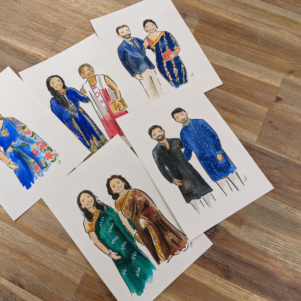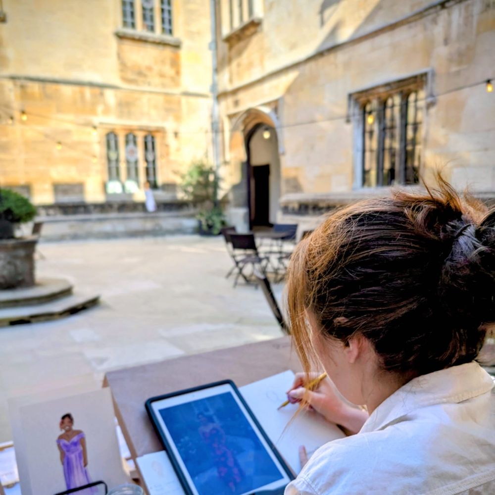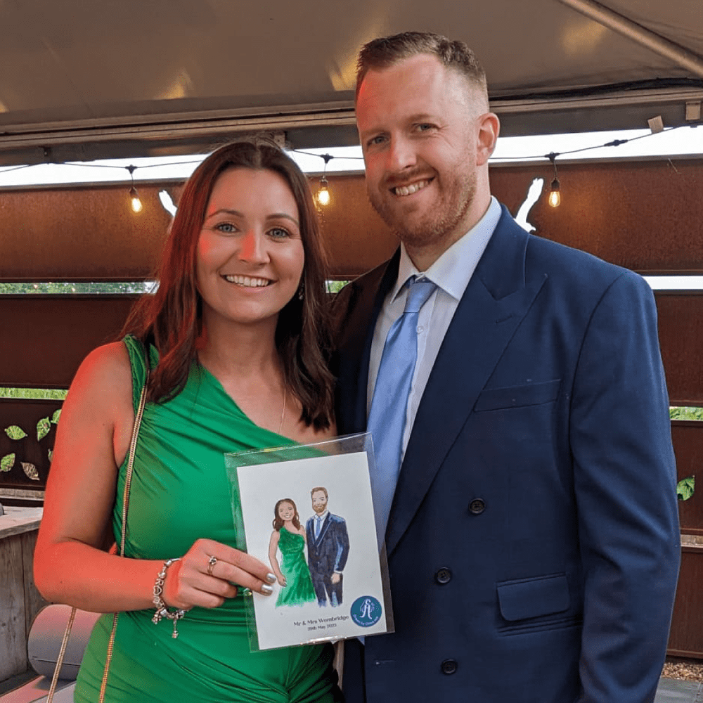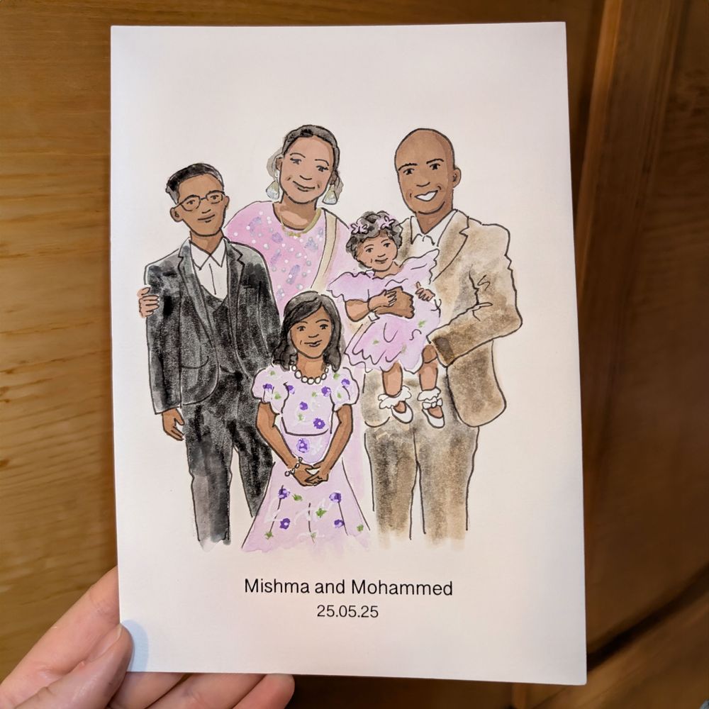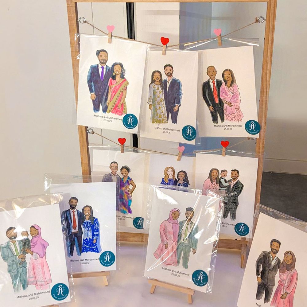 Live illustration for weddings and events - Entertainment that is as unique and special as your guests are! I draw your guests as they celebrate, creating vibrant portraits of them. It's interactive entertainment and a meaningful keepsake in one. Perfect for couples who love unique touches! If you're planning a wedding that's more about creating an unforgettable experience than perfection, you've come to the right place. I create live illustrations at weddings across London and the surrounding counties - giving your guests a truly unique, personal keepsake. I take photos and then draw your guests as they mingle. It's interactive entertainment that creates a real buzz! There's something magical about watching portraits come to life in front of you, and guests love seeing themselves transformed into colourful illustrations that make them go "that looks just like me!" With a background in animation and children's illustration, my focus is capturing genuine likenesses through recognisable expressions and features - plus your fabulous outfits! I love bold colour and creating vibrant, contemporary portraits guests are proud to display. Live illustration is perfect for experience-focused couples who care about connection.
