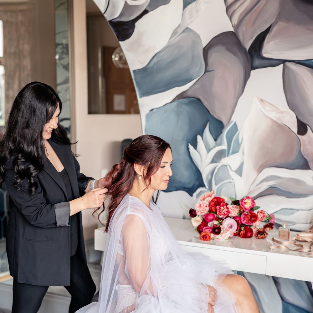 Professional bridal hair and makeup artist specialising in glowing skin, soft glam and natural makeup. As well as waves and clean buns. I have over 12 years experience within the hair and beauty industry, and I'm passionate about providing a luxury experience for you on the morning of your wedding. Based in Cheshire, I provide both hair and makeup services. If you are in search of a bridal specialist who can be booked for both hair and makeup, or one or the other, you have come to the right place. I am all about providing the best experience for you and your gals on the morning of your wedding. I offer both ' à la carte’ and ‘package’ services, so you will be able to find the best option to suit you.