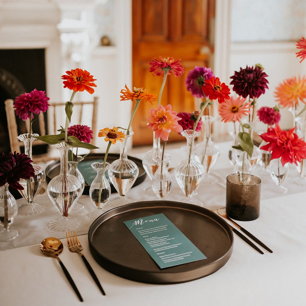 Thank you again so so much for our gorgeous flowers! I must have been a bit of a nightmare having completely changed from our original idea. You were so calm along the whole process even when you delivered them it was so nice to see a friendly face and I knew everything was under complete control! Our bouquets were stunning I had so many compliments on them - so different, modern and absolutely beautiful. The instalments for the ceremony were perfect, tying in a theme across the whole day and being able to move them into the orangery for the rest of the day was brilliant. The tables - WOW! Where do I start, exactly what we had imagined but even better - so sleek and gorgeous even the candles and sticks you managed to source were perfect! We really can’t thank you enough for making everything so beautiful!