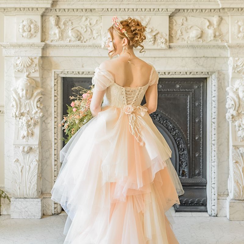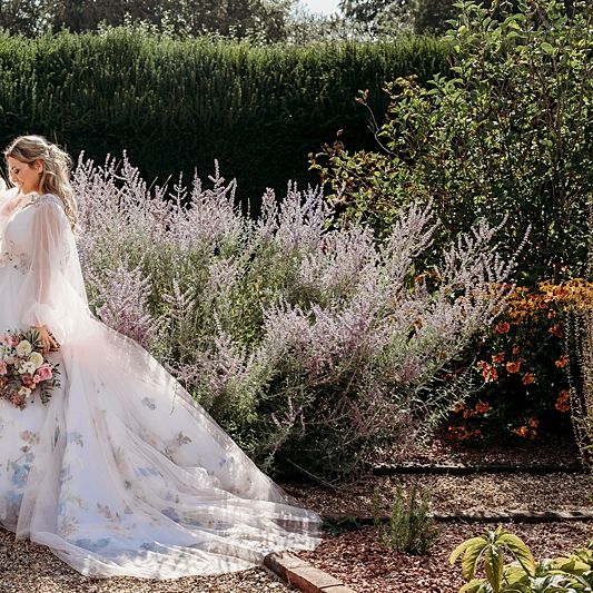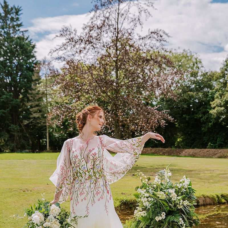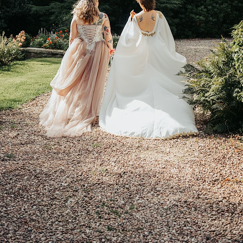 Felicity makes bespoke wedding dresses from her studio in Dorking, Surrey for brides across London and the home counties. Felicity has 20 years experience, creating dresses that tell a unique story for each bride. Felicity specialises in alternative, colourful dresses alongside classic couture. Felicity is the Dress Alchemist Having a bespoke wedding dress made starts with an individual consultation where we discuss your ideas and look at fabrics. Felicity will sketch out a design and send you a quote letter after the meeting for your approval. If you decide to book in, a deposit secures your spot in her sewing schedule on a timescale to suit your wedding day. Most bespoke designs come in £3000-£5000 including materials. Some very simple designs may cost less, or the very ornate and theatrical confections can stretch higher. Felicity can also help with bridesmaids, flowergirls and unique designs for the mother of the bride or groom. Felicity's training in theatrical design means she has an understanding of world and historical dress and can draw on the depth and breadth of techniques and styles this knowledge affords. Felicity is sought out for her colour work, creating dip-dye dresses on bespoke creations or on dresses bought elsewhere.