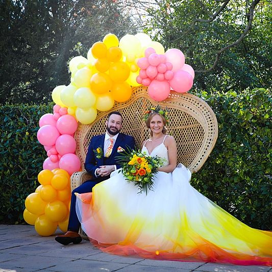 The one thing I knew I wanted for my wedding even before I was engaged was a dip dyed wedding dress. I spent ages searching but no one I found was quite what I wanted, nothing was bold or vibrant enough. As soon as I found Felicity I knew she was "the one!" It turned out due to the material of my dress it wasn't suitable for the usual technique she uses to colour wedding dresses, she did have an alternative method but explained it came with some risks. Felicity explained the process in great detail before we agreed to go ahead, her knowledge and experience made my decision pretty easy and the result was so much better than I imagined! I had so many compliments on my wedding day and the one thing everyone has said about the dress is "it's so you!" I think I was more excited about my dress than my actual wedding! It was perfect, thank you!