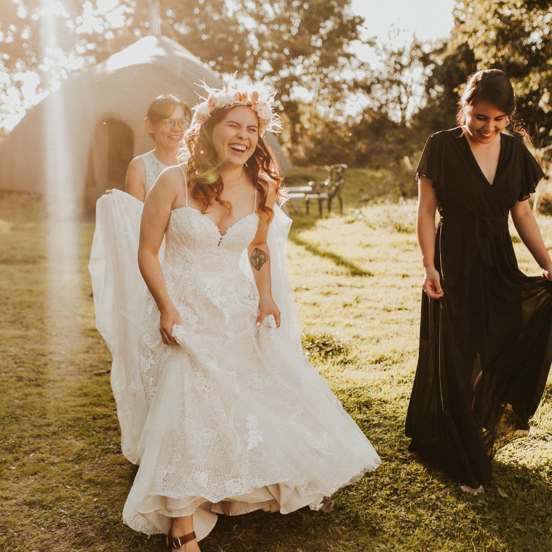 Dear Ella, Eva, Rachel, Sarah and the whole Fire Pit Crew Nick and I just wanted to say a huge THANK YOU from the very bottom of our hearts for giving us the most amazing wedding day we could have possibly asked for. It was honestly the best day of our lives and we're still in such a huge bubble of happiness. Everyone was fantastic from day one, Rachel - throughout all the postponements you kept us staying positive and fun, always answering all my many questions throughout the last couple of years! Sarah and Ella - from the moment we came for another planning meeting in August we knew it'd be the best day ever - thank you for being so calm and encouraging of our ideas, and helping us to feel like our day was really coming together. Ella, you were so helpful in the last few weeks during all my panic moments, and last minute changes to details! Eva - Nick says that you kept him sane the morning of the wedding when he was at his most stressed, and kept things under control and running smoothly, especially when it was finally a GO GO GO moment for moving the ceremony outside! All the rest of the staff were fantastic too and they brought such a fun and relaxed vibe to the whole day and evening. The day before the wedding I was definitely on the edge of a breakdown with the weather looking so bleak, and so many people asking me what they should do. You were all absolutely brilliant and nothing was too much to ask. Ella you took so many things out of my hands and I'm so grateful for that (I'm welling up a bit now!) The day ran so smoothly thanks to you all, even though it started late, everything seemed to just run to plan anyway. Well it did from our point of view anyway! So thank you for that. Everyone has commented on what an amazing venue the Fire Pit was and how it was so many of our guests favourite ever wedding! We're SO happy we saw that advert in RocknRoll Bride magazine in early 2020 and came to visit you on that soggy February morning. We couldn't have hoped for a better venue and staff. I've attached a couple of preview pics that we've received from Sophie already, and can send you the link to the gallery when we get it if you like. We'll definitely be back in the future to camp and reminisce about the best day ever. Thanks so much again, and take care :) Jen and Nick Schofield xxxxxx