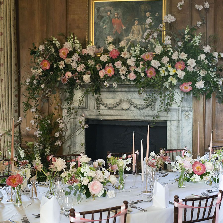 George is the perfect supplier! Though it doesn’t feel right to call her that. From the first moment we met, we loved her – she felt like a friend instantly and we were so excited that she’d be a part of our wedding day. The process was really enjoyable and felt so easy, our calls always included lots of laughing! She was able to create floral pieces that could be moved from the church to the reception so we could enjoy them for the whole day and evening, and the garland across our sweetheart table and the large displays on the tables were simply beautiful. Not to mention all the other special touches, such as bouquets, buttonholes, sill arrangements, flowers for the cake and our hair, and petal confetti.