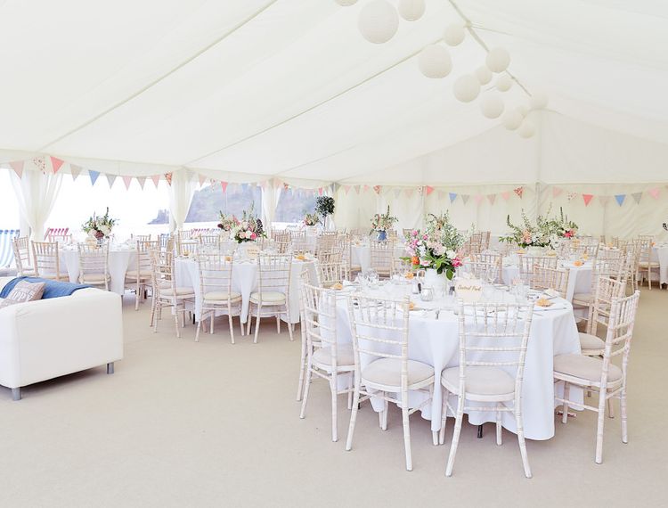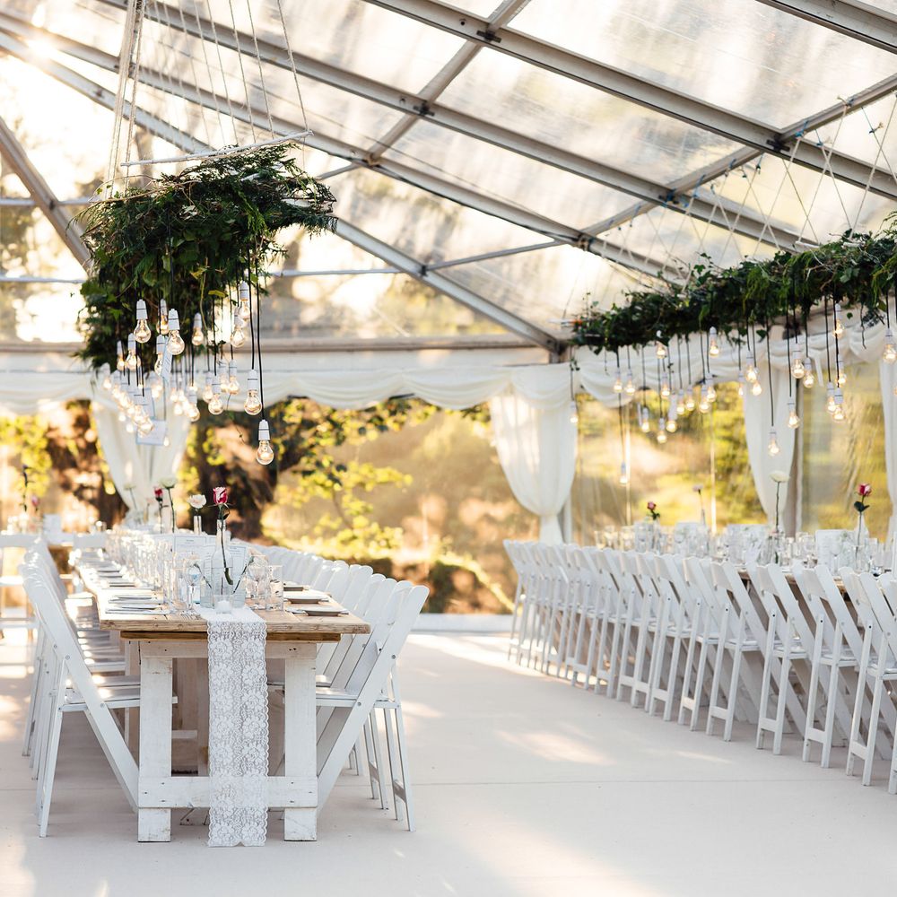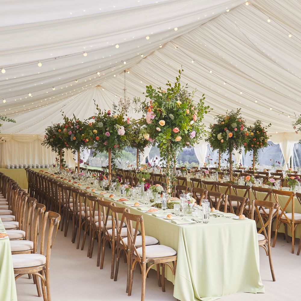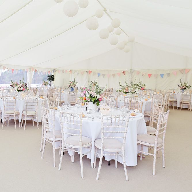 Yes, yes yes! Decorating your marquee is what makes your wedding marquee or party marquee completely unique. We can provide some guidance on where and how to fix decorations to the structure but we would very much encourage you get creative whether you do this yourself or by using florists or other creatives! If you are looking for ideas then we would suggest following our Instagram page along with our pinterest . We regularly update both with our latest images and it is a really good way of getting a feel for what works. We particularly recommend hanging decorations or floristry in the lofty roof space of the marquee.