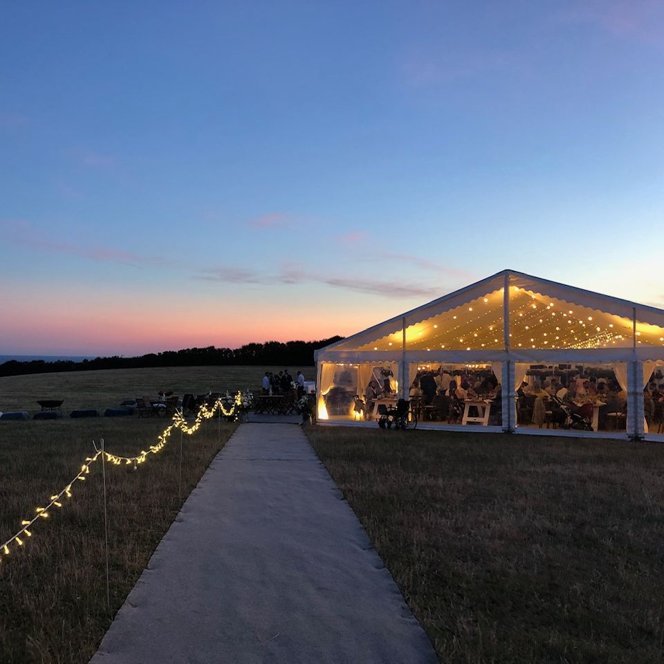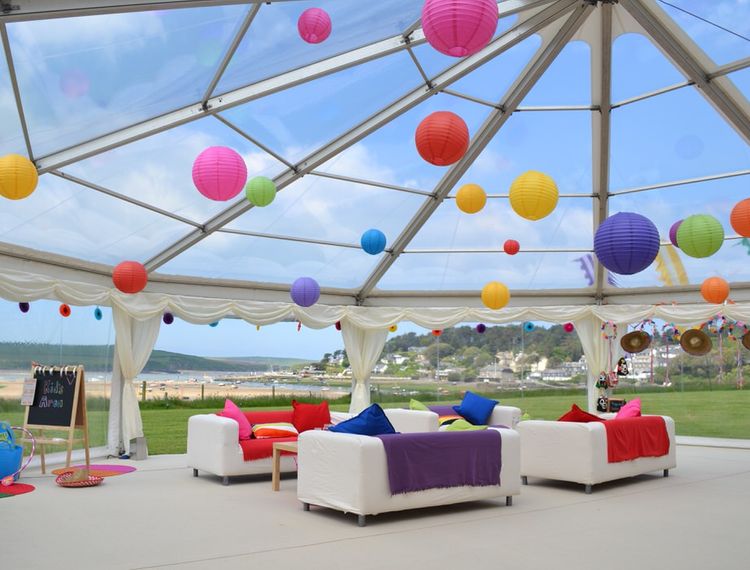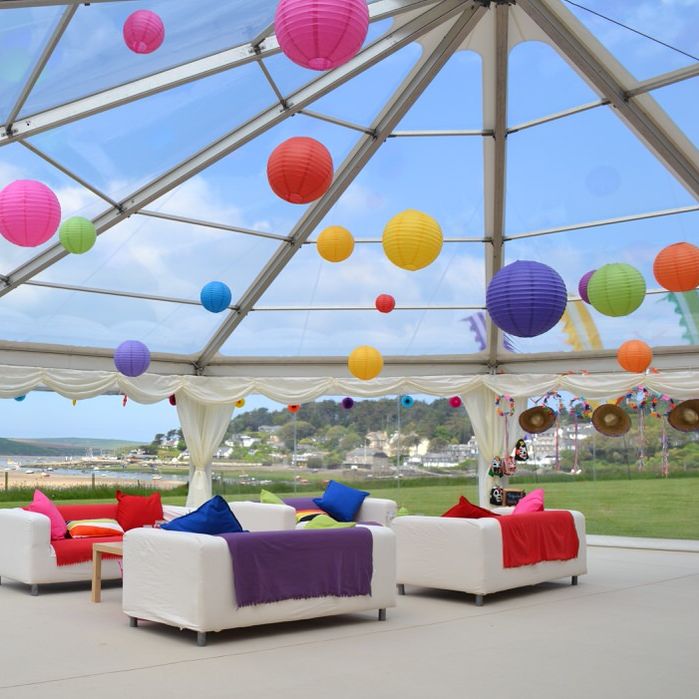 Thank you for our amazing marquee. The clear dome over the dancefloor and all the beautiful fairy lights were spectacular and created an amazing atmosphere. It was great to roll up the sides so our guests could enjoy the sea view during dinner. We are so grateful for all your hard work and help particularly in the site visit and planning and everything with the setup was so seamless.