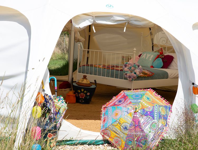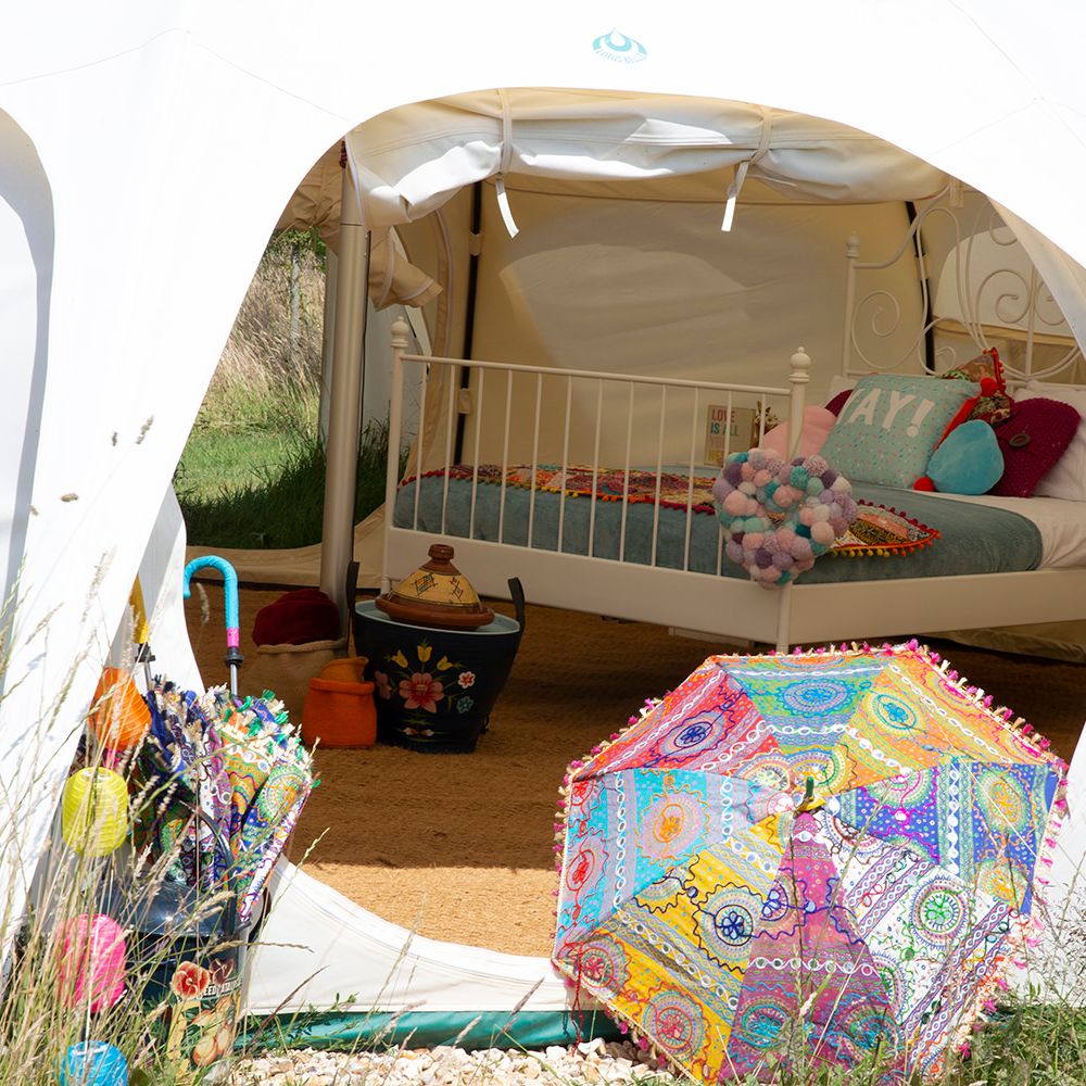 We include 5 spacious (6m) Lotus Belle tents (to sleep 22); a modern farmhouse with 5 bedrroms (sleeps 10); and best of all, a quirky curved 'Hobbit House' honeymoon suite for romantic seclusion (for you 2)!