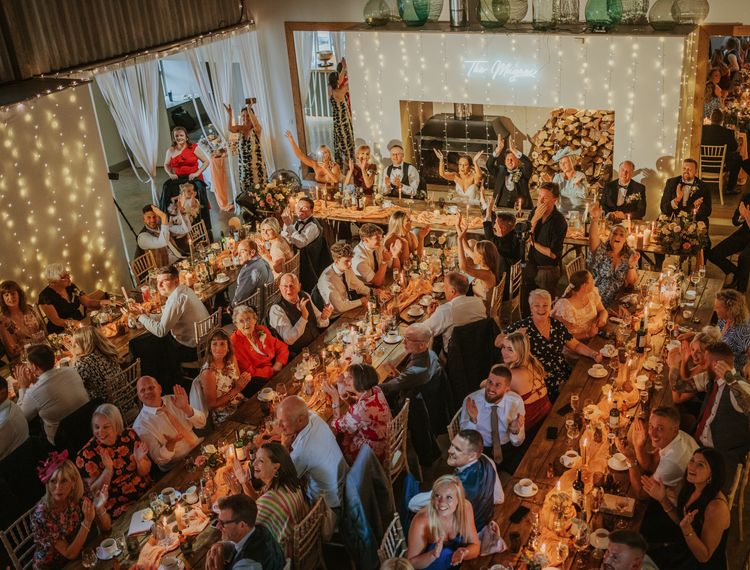 We are licensed for up to 150 guests in the Marquee and Grain Store and 120 in the Foundry. For more intimate weddings we can sit up to 26 in the oak-panelled drawing room in the house. How many guests can Houchins accommodate to sit down for the wedding breakfast? We can comfortably seat 150 guests in the Grain Store – 100 downstairs and 50 upstairs in the mezzanine. Do speak to the team about your seating plan options.