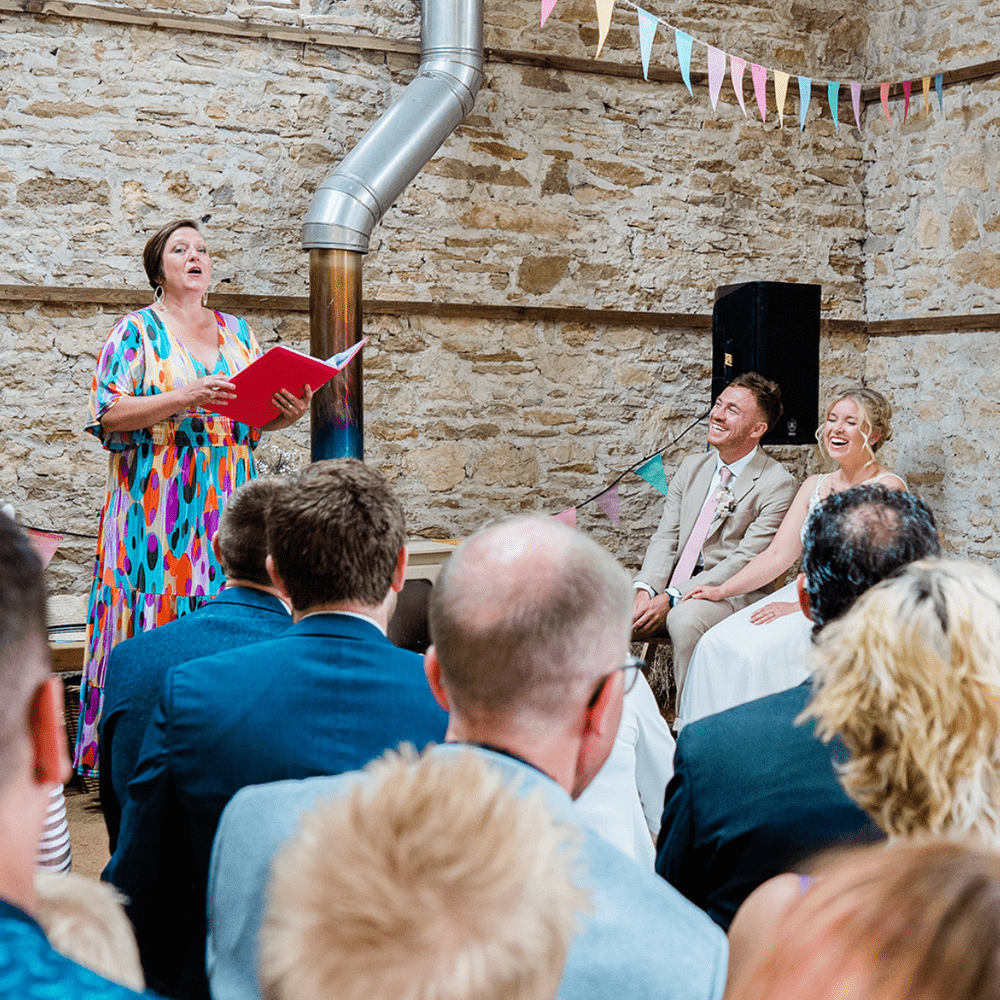 Jen was our celebrant for our village hall wedding and she made our ceremony an absolute dream come true. Throughout the process of coming up with the ceremony Jen was very communicative, she arranged several meet-ups and made a real effort to get to know myself and my husband Adam as people. This resulted in such a fun, creative and thoughtful ceremony which was perfect in representing us as a couple. SO many of our wedding guests told us it was the best wedding ceremony they’d ever been to, and how great Jen was. Jen made not only our ceremony, but the whole wedding process so special, she even spent hours helping us set up the hall the day before! Jens biggest asset however, has to be her warmth and kindness as a human being. She is honestly a truly wonderful person. Her ability to fill a room with laughter, and also put us at ease, meant myself and Adam felt totally comfortable being both funny and vulnerable in our promises; needless to say there wasn’t a dry eye in the house. I could honestly write an essay on what a gem Jen is and why everyone should hire her as a celebrant and if you do, you’ll come away feeling like you’ve made a friend too - we love you Jen! xx