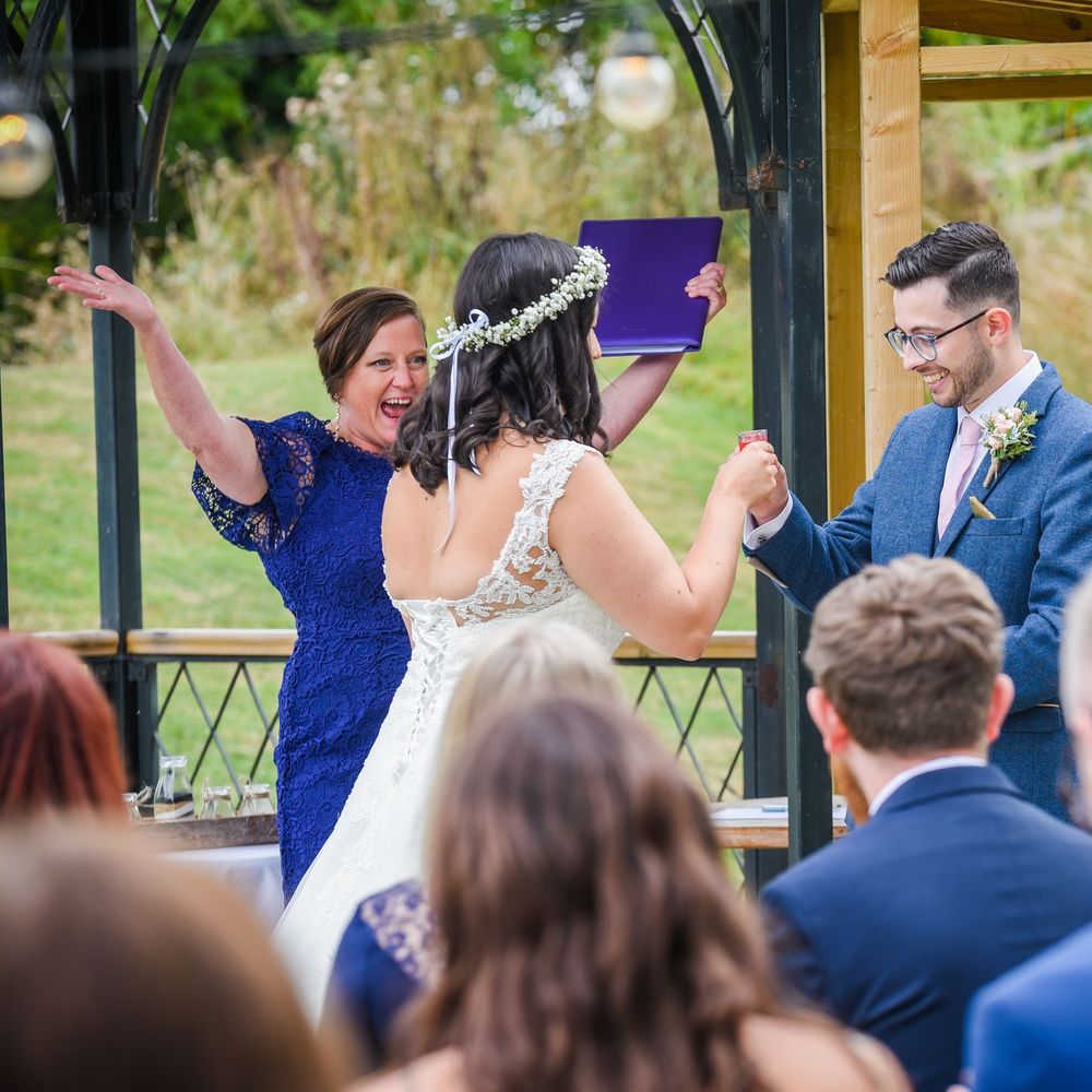 As your Celebrant I will work with you to make every aspect of your ceremony reflect you and your partner’s personalities. Every time I officiate a wedding ceremony, it will be unique, different from the last one. Unlike a registrar, who repeats the same script, every day, several times a day – so no wonder they can be a little dry. With a Celebrant led wedding, the party starts with the ceremony, and so it should! Wahoo!! There are no limits to what you can do, say or where you have your wedding ceremony. You can bin the rules! – Rewrite your own rules! - Celebrate in your own amazing memorable way! If you want to go down the aisle on a motorbike, you can! You can include quotes from your favourite films, incorporate your family and heritage traditions, involve your pooch, have a karaoke sing-song during your ceremony! Why not stop halfway through and have a toast to your wonderful guests? Just think of the love invested in writing your own wedding vows that are personal and special to you as a couple! I will listen to you and create a unique bespoke ceremony all about you and your love story. Nobody else will have a ceremony like yours! Traditional, modern, funny, quirky – the choice is in your power! So, if you DON’T want a dull, dry, regular ceremony and you DO want the party to go from start-to-finish - Call me and let talk about your wedding ceremony! You’ll have the most amazing memories and so will everyone else!