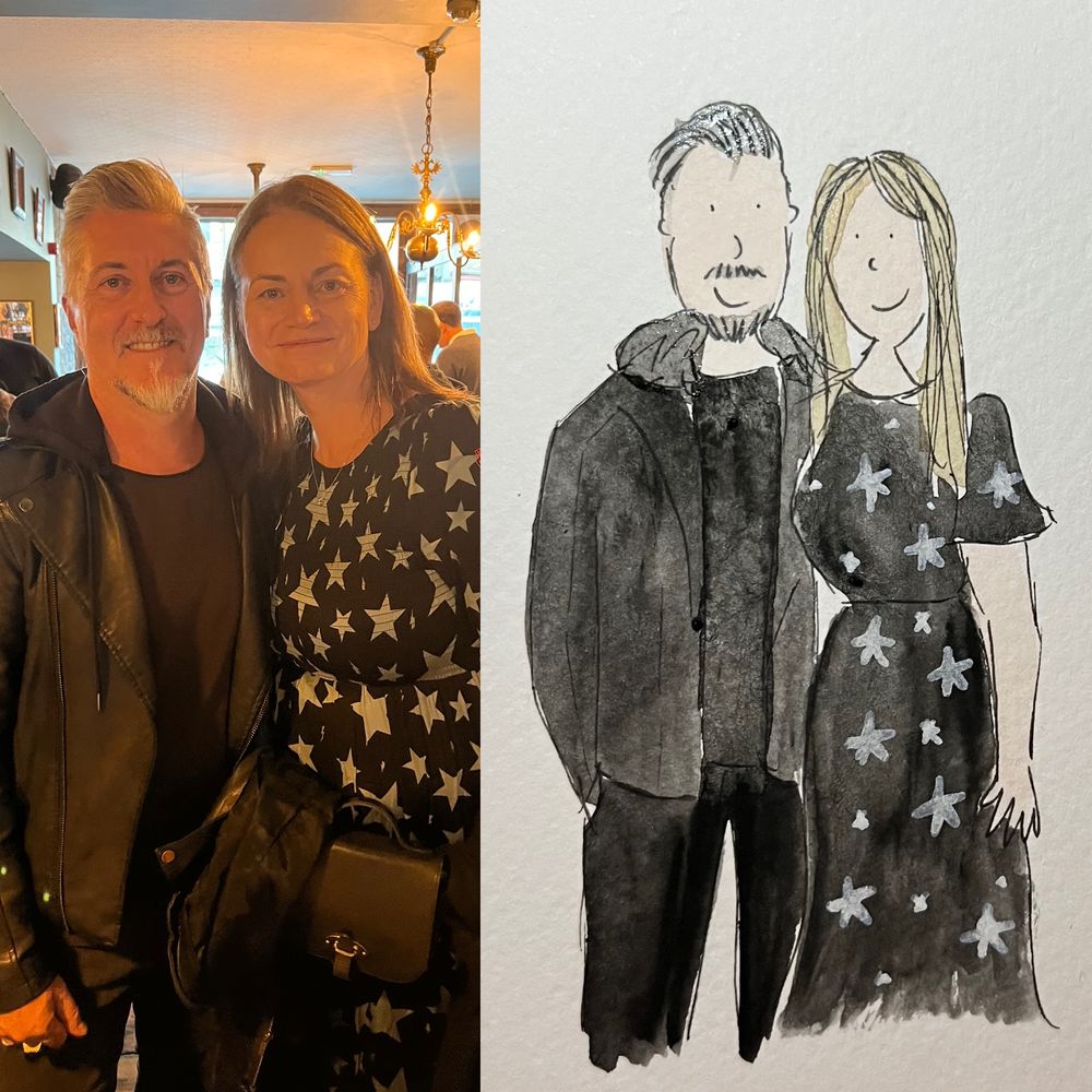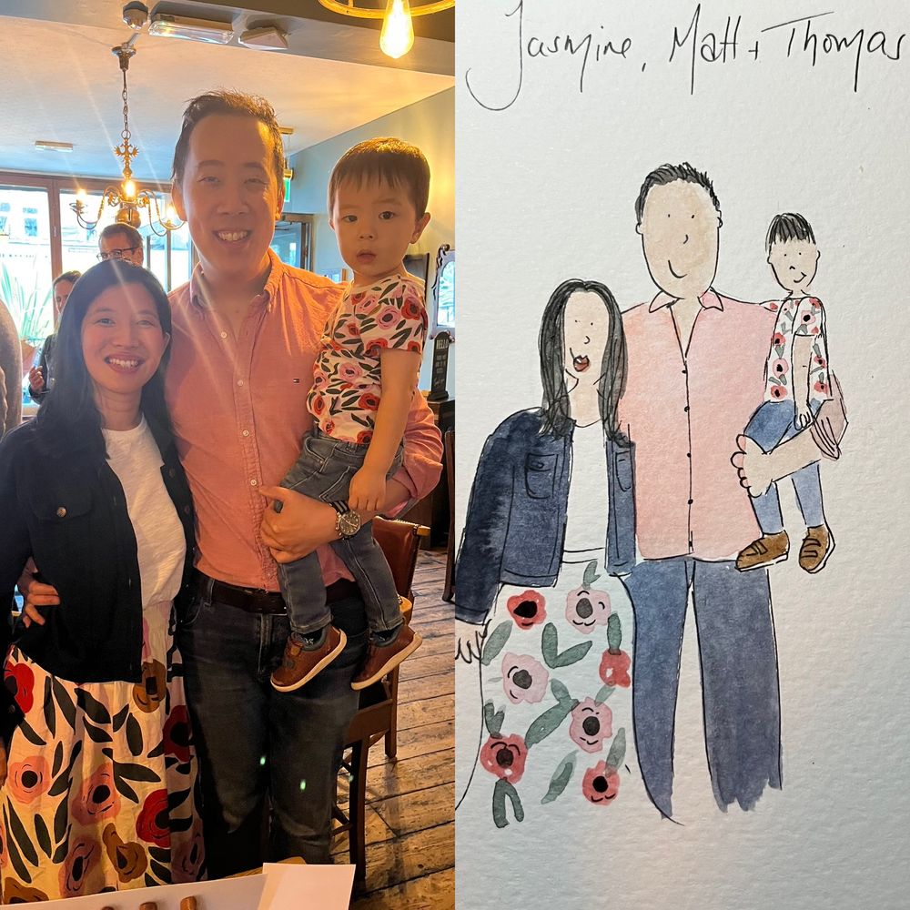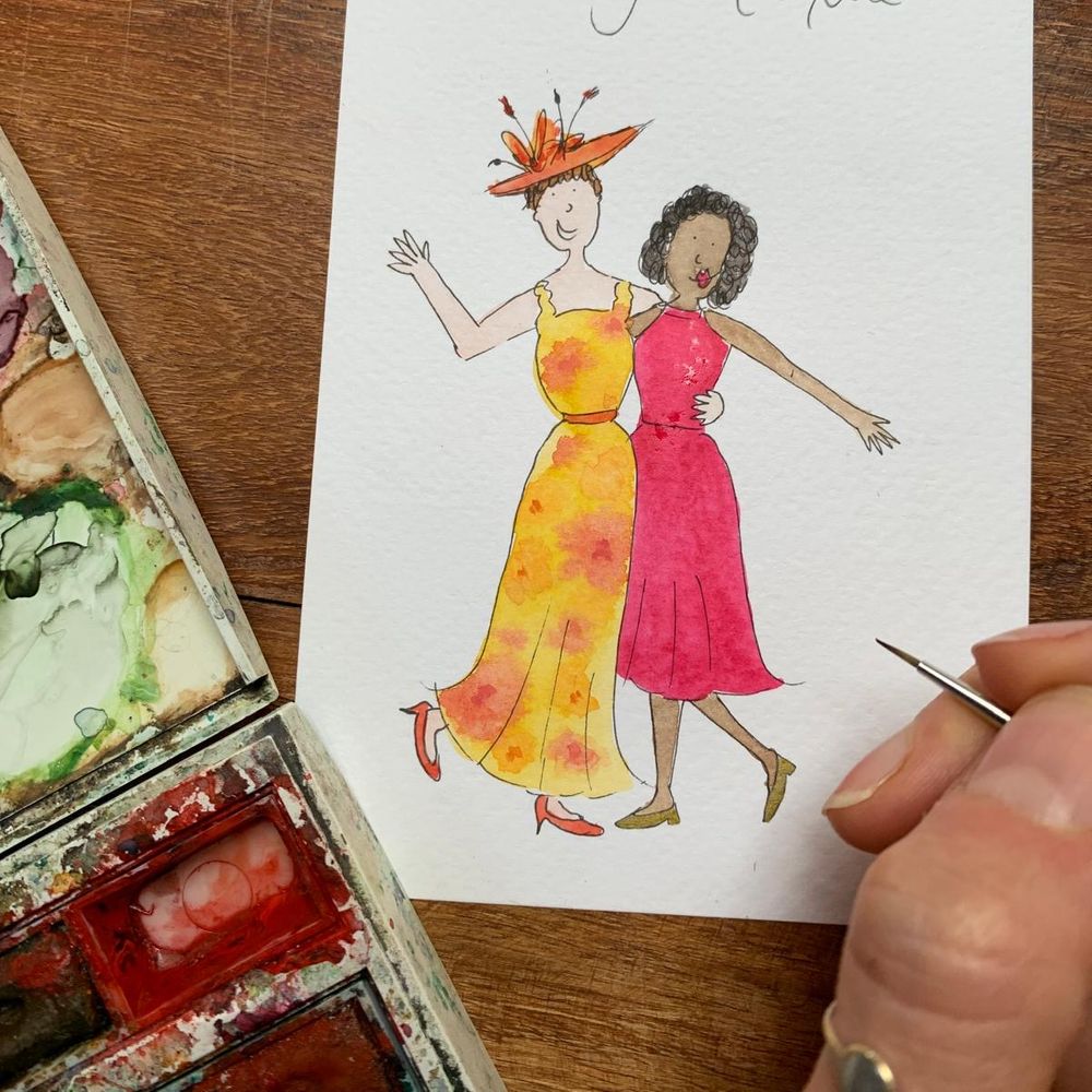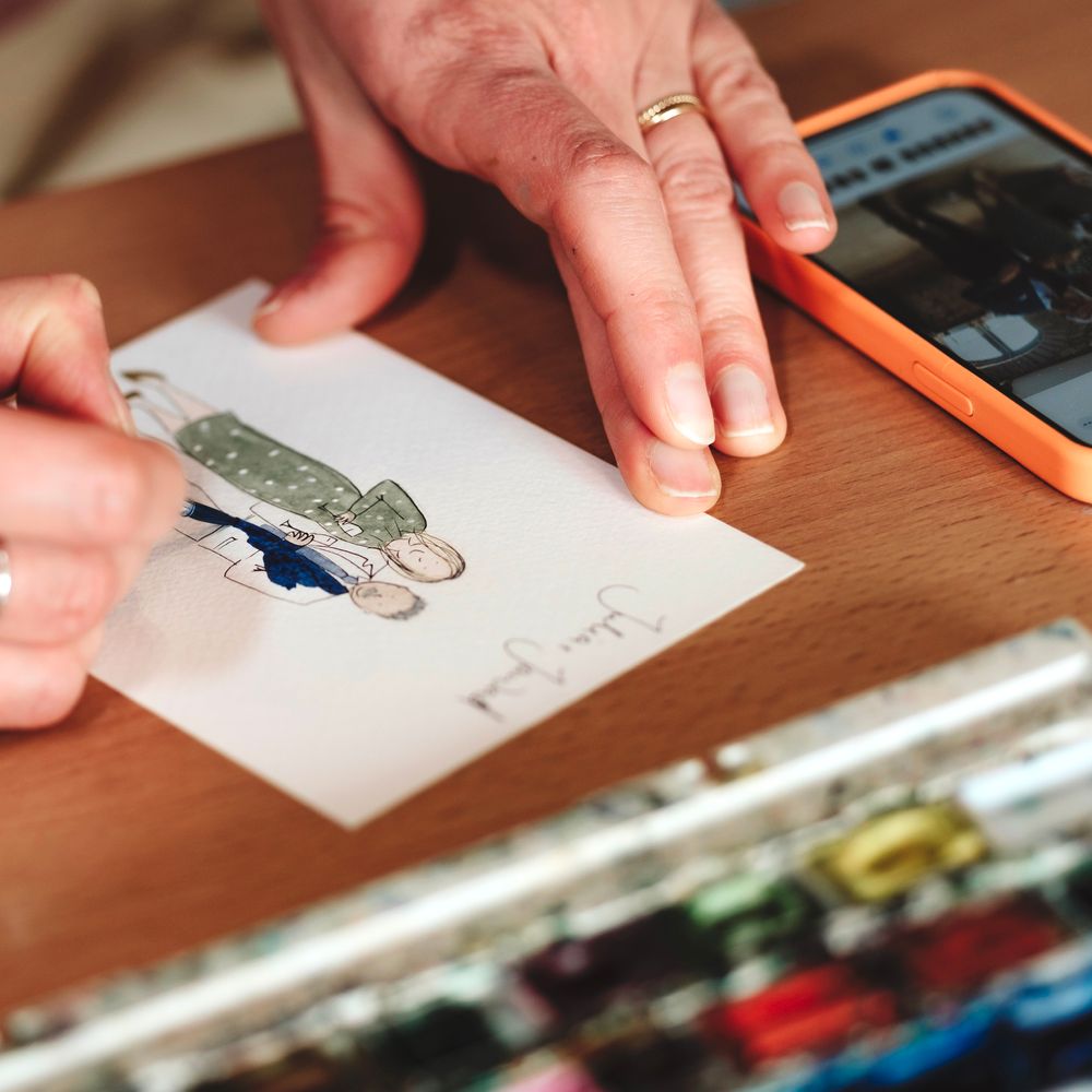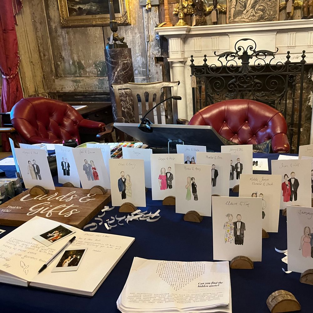Hi, I am a live portrait illustrator. Painting watercolour portraits of all your guests for the most unique wedding favour ever! Think of me like a live, hand-painted Photo Booth! I arrive before the ceremony and take photos of all the guests, so nobody wastes any time posing for a painting. During the ceremony and then throughout the day, I will hand-paint everyone on lovely, textured watercolour card. Guests can come and watch me work, providing entertainment, and then take home and frame their very own personalised watercolour portrait- a gorgeous memory of your day! Alternatively, the married couple can take all the paintings home to have a good look through, take photos and then send them out as personalised thank you cards. Entertainment, wedding favours and thank you cards, all in one! And in this era of digitalisation, my hand-painted designs offer that touch of love and personalisation to your day.
