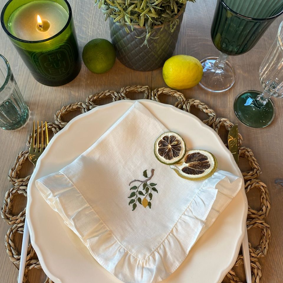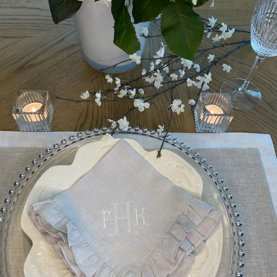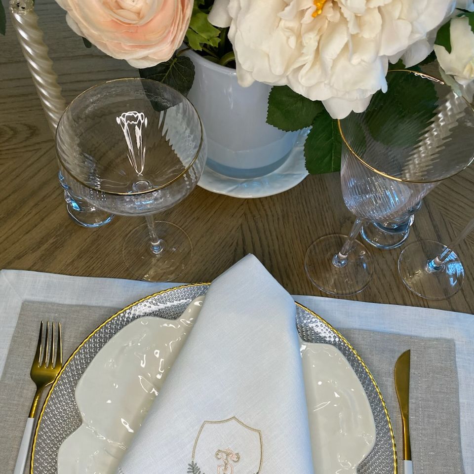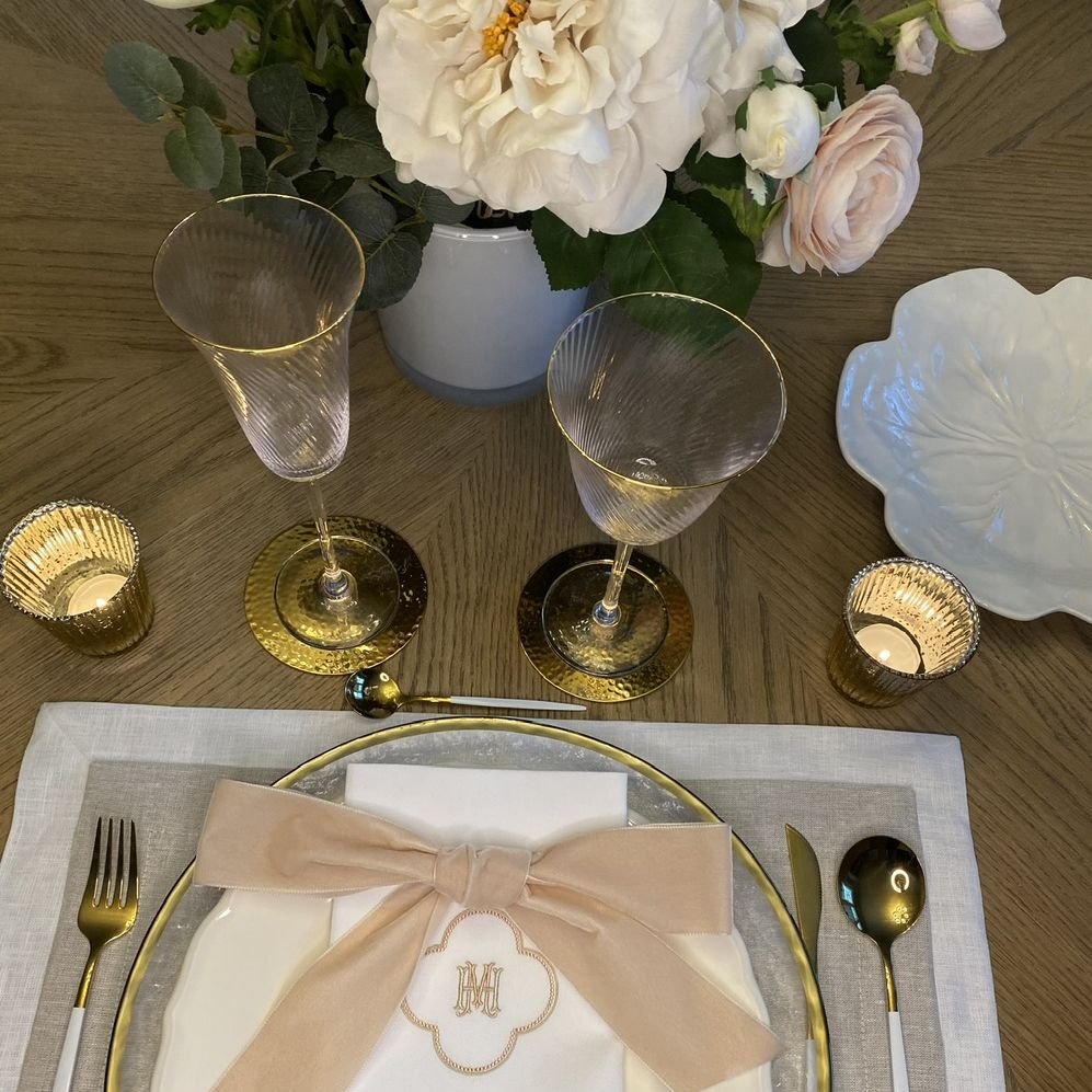 We offer bespoke tablescape products, including napkins and ribbons that are personalised with embroidery, names, dates or monogramming to create a truly unique tablescape and fine dining experience.