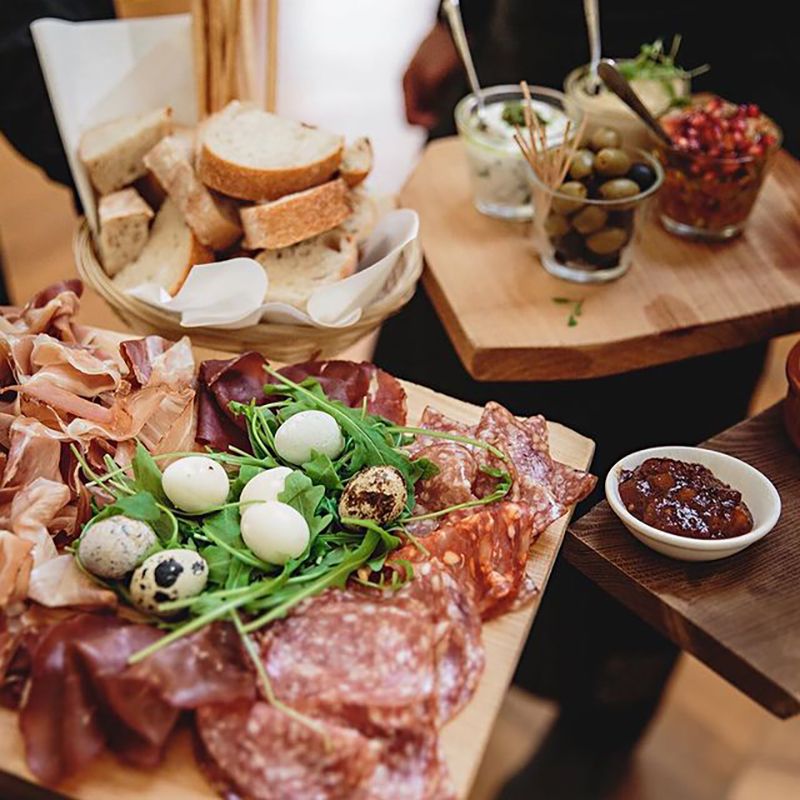 We like to think that in winter it’s only polite to indulge. We all want to sit down to a hearty meal and warm up, not stand around picking at small, cold portions of underwhelming food. When you’re planning a winter wonderland wedding you simply can’t ignore the prospect of treating your guests to a classic, quintessentially British roast dinner (with all the trimmings, of course), especially if you’re going festive with your theme! But if you aren’t a fan of the standard ‘meat and veggies’ set menu, we have the answer. Whether you’re serving up in a tipi in a frosty field or hunkering down in a converted barn, our rustic sharing feasts always go down an absolute storm. There’s nothing more joyful than watching your loved ones come together over delicious sharing boards, passing around bowls overflowing with scrumptious sides, delegating an official representative from each table to ceremoniously carve the meat. And the best part? Your sharing menu can be entirely tailored to you to truly create the winter feast of your dreams.