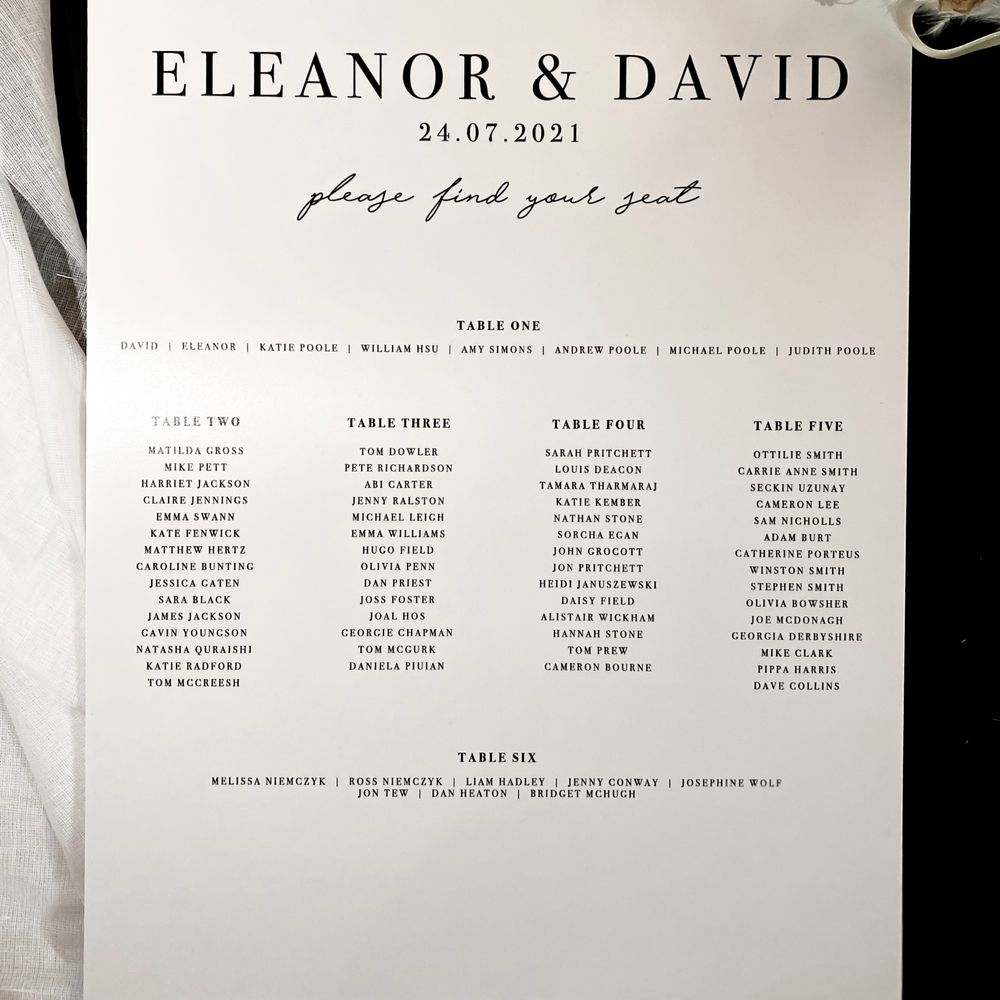"Received exactly what we wanted for our wedding stationery from kirsty, she listened to our specifications and delivered our fantastic table names, name cards, and seating plan on the day. so so happy, thank you so much! would definitely recommend!"