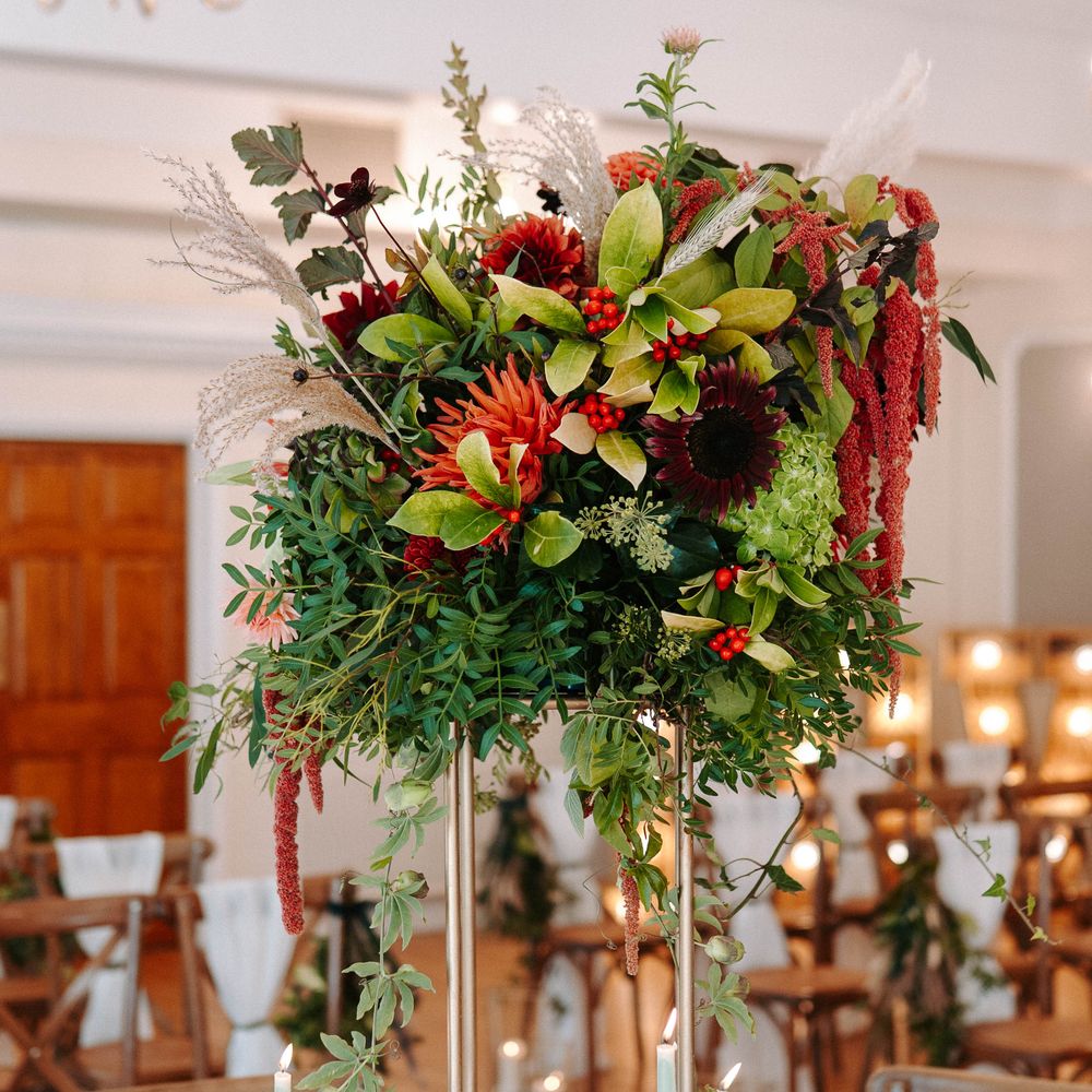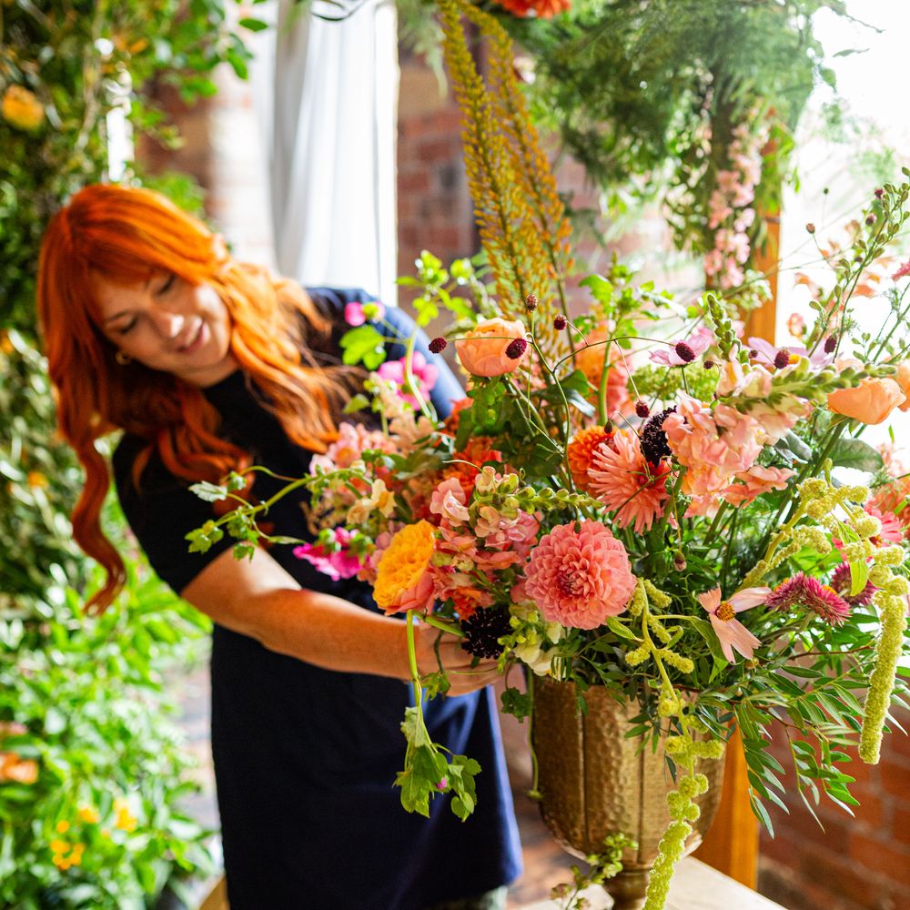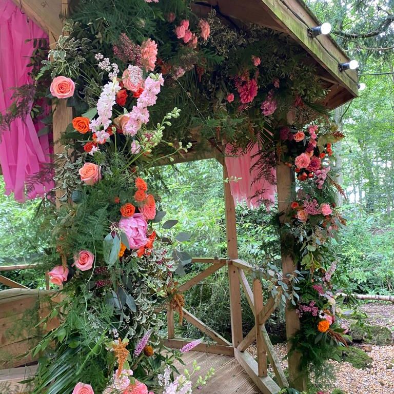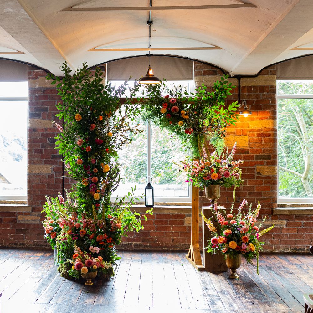 We’ve been creating beautiful flowers, arrangements and installations for weddings and events in Yorkshire and beyond since 2006. We design and make bridal bouquets, floral garlands, aisle and table runners, buttonholes, grand urns, hanging installations, flower columns and everything in between. At Leafy Couture Calderdale, we believe your wedding flowers should feel as unique as your love story. Nestled in beautiful West Yorkshire, we weave together the magic of the seasons with a daring love for colour and texture. Every bouquet, archway, and table arrangement is designed to sing with personality, whether that means wild and untamed blooms spilling with summer abundance, or rich, jewel-toned petals dancing in the golden glow of autumn. We’re not about cookie-cutter weddings; instead, we’re about creating florals that feel alive, telling your story in every stem. From delicate seasonal details you’ll discover up close, to bold, showstopping installations that have guests talking for years, our work celebrates individuality, romance, and the joy of the unexpected. If you can dream it, we can flower it, gloriously, seasonally, and unapologetically, you.