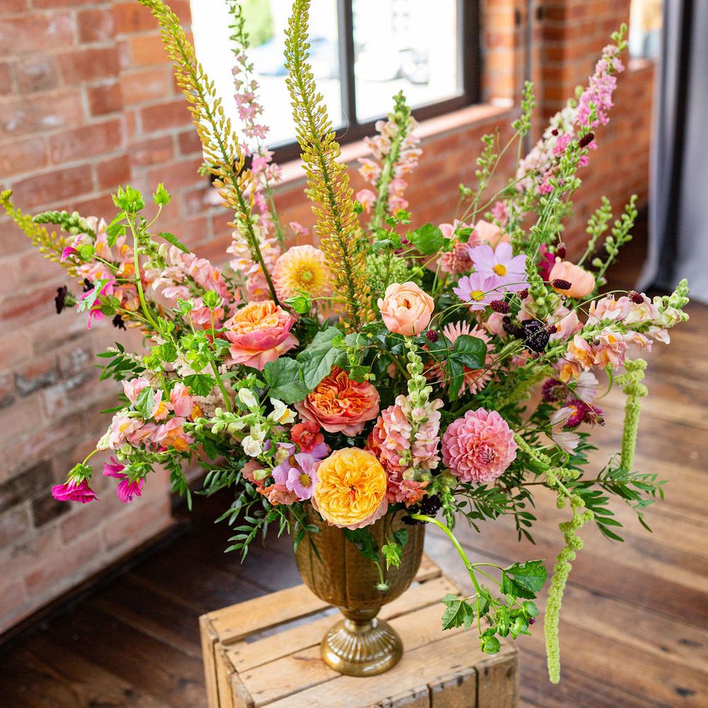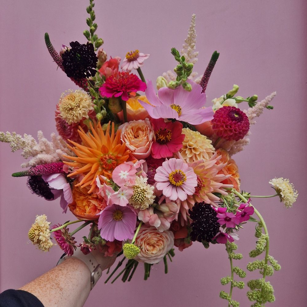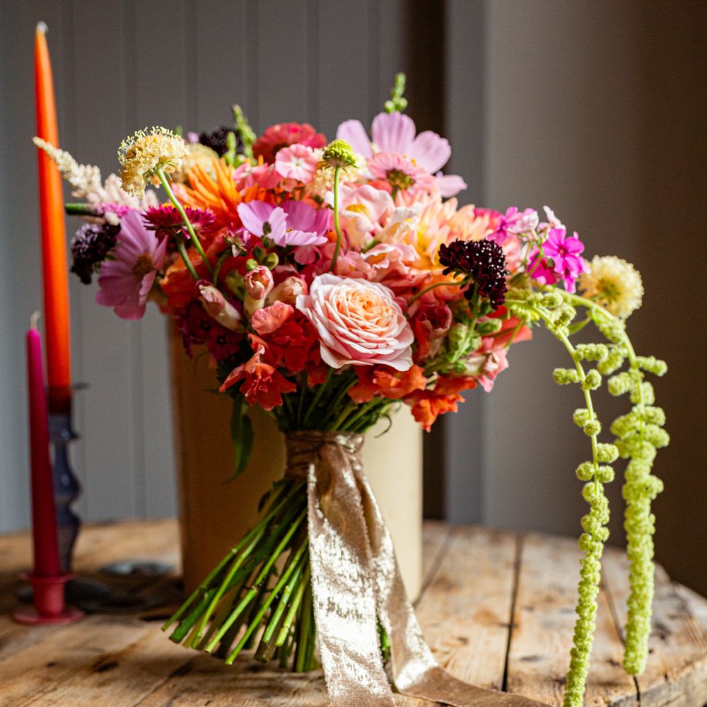 We’ve been creating beautiful flowers, arrangements and installations for weddings and events in Yorkshire and beyond since 2006. We design and make bridal bouquets, floral garlands, aisle and table runners, buttonholes, grand urns, hanging installations, flower columns and everything in between. At Leafy Couture Calderdale, we believe your wedding flowers should feel as unique as your love story. Nestled in beautiful West Yorkshire, we weave together the magic of the seasons with a daring love for colour and texture. Every bouquet, archway, and table arrangement is designed to sing with personality, whether that means wild and untamed blooms spilling with summer abundance, or rich, jewel-toned petals dancing in the golden glow of autumn. We’re not about cookie-cutter weddings; instead, we’re about creating florals that feel alive, telling your story in every stem. From delicate seasonal details you’ll discover up close, to bold, showstopping installations that have guests talking for years, our work celebrates individuality, romance, and the joy of the unexpected. If you can dream it, we can flower it, gloriously, seasonally, and unapologetically, you.