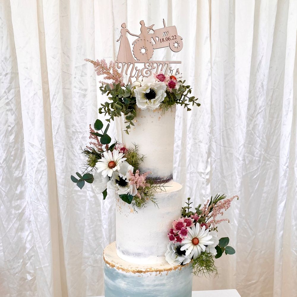 We asked for a rustic, boho three-tiered cake to match our country themed wedding. The colours of the cake matched our scheme perfectly and even more importantly the cake tasted absolutely gorgeous! Nothing was ever too much for Nikki, even when we were designing the cake. She goes above and beyond for everything and you can’t ask for more than that! Thank you, Lolli & Bean, Toby & Nikita.”